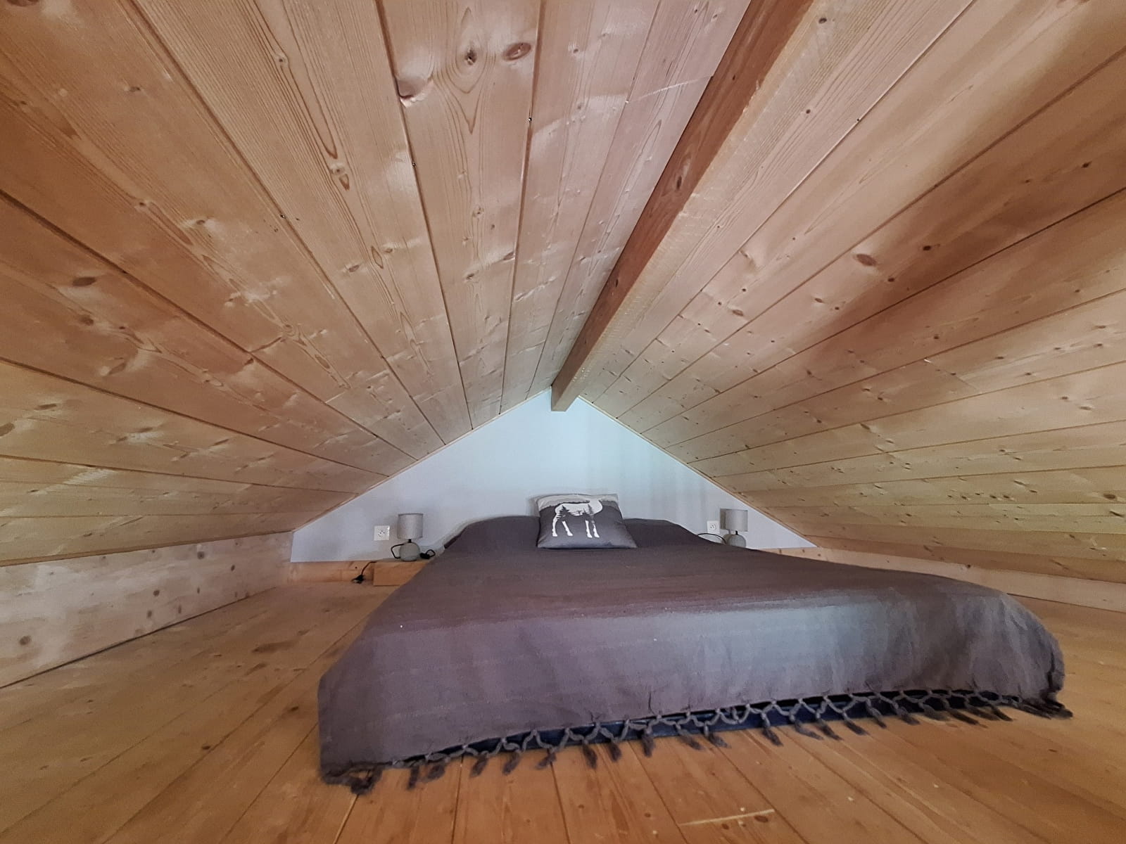 D'une capacité de six personnes, cette chambre d'hôtes propose également la table d'hôtes mais aussi des formules gîte avec une cuisine équipée. La chambre, nichée dans un charmant chalet à quelques pas de la résidence principale, offre un écrin de quiétude au milieu d'une nature luxiriante. L'épicerie du village, située à quelques pas, se transforme en restaurant le week-end et vous invite à un voyage gustatif très apprécié.