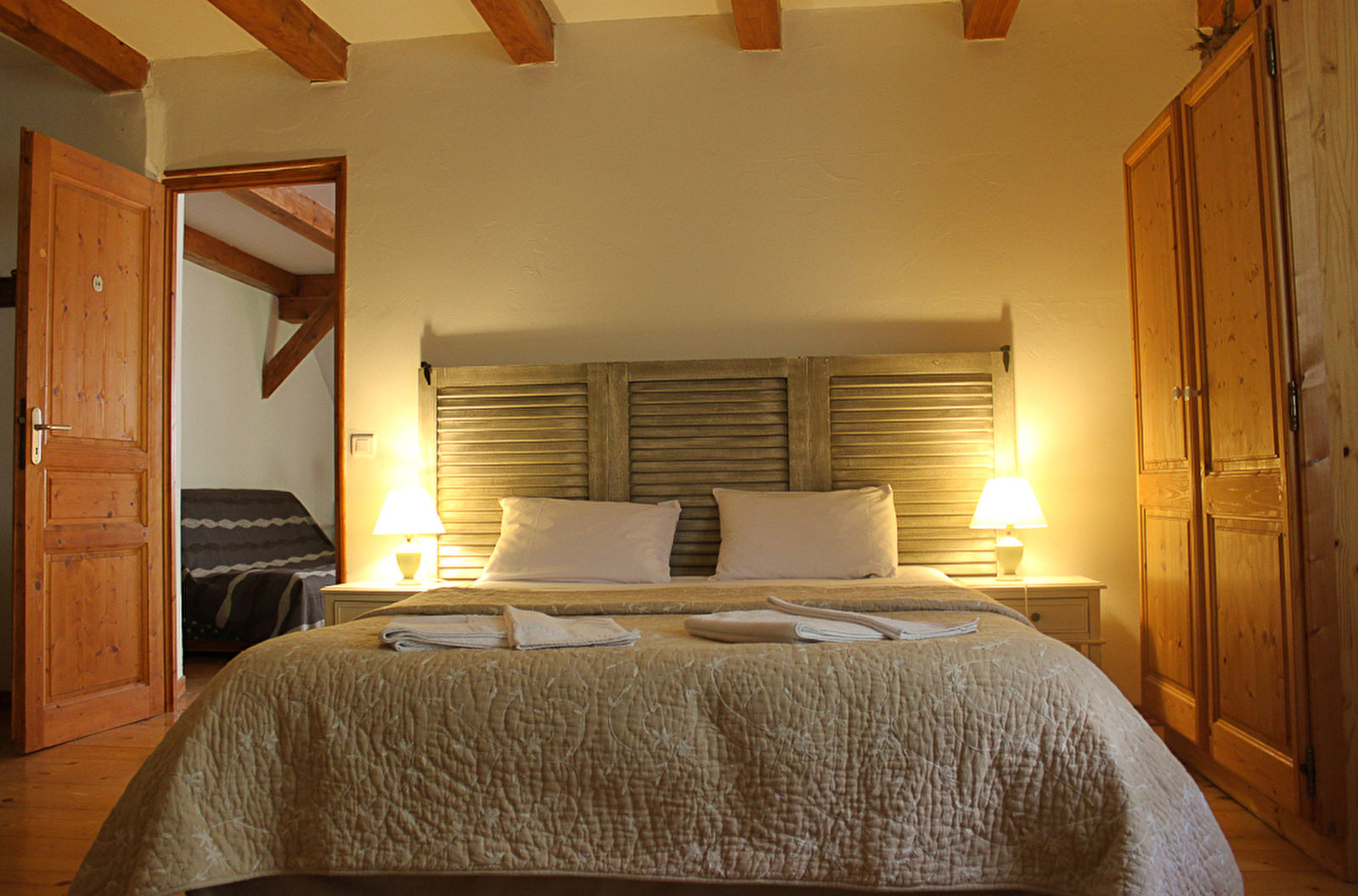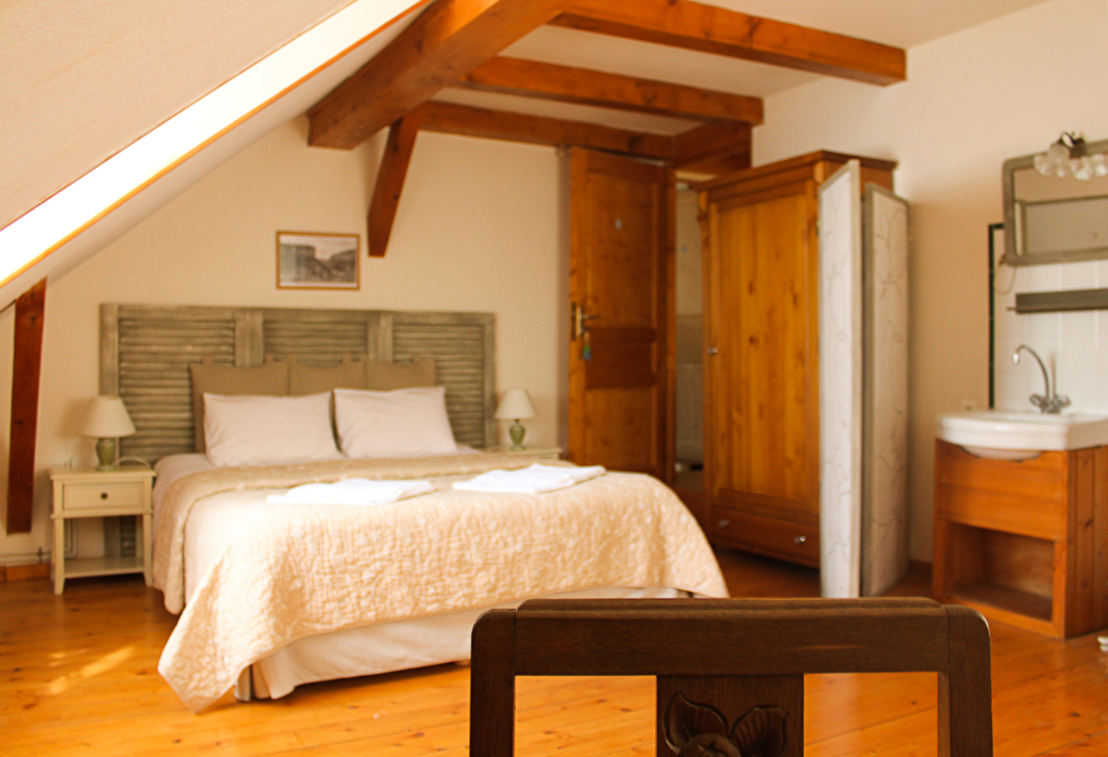 Restaurant et chambres de caractère : trois chambres spacieuses dont une chambre familiale. Décoration sobre et chaleureuse. Salle de bain avec douche italienne. Visite virtuelle des chambres sur notre site.