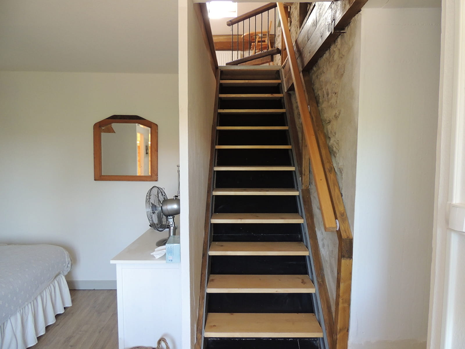 Les 4 chambres sont tous ensuite : douche, WC et meuble avec lavabo. La chambre double "Lily" de 17 m² et la chambre double "Toiler" , 14 m² ont une vue sur le canal. La chambre double "Elektra" de 17 m² a une vue sur le canal et sur les champs. La chambre familiale "L'Étoile" est sur deux niveaux, 18 m² et 15 m² avec un lit double et 2 lits simple 90x200.