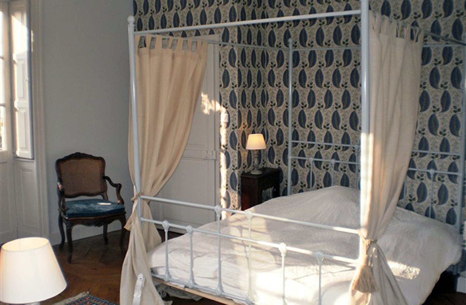 Découvrez nos deux chambres rénovées avec goût par Félicie, la maîtresse de maison, artisan tapissier. Vous profiterez de magnifiques tentures murales. Nos chambres très lumineuses, marient agréablement le charme de l'ancien (lit double à baldaquin, alcôve, boiseries, cheminées, balcon en pierre, ...) avec une décoration tendance et un confort moderne.