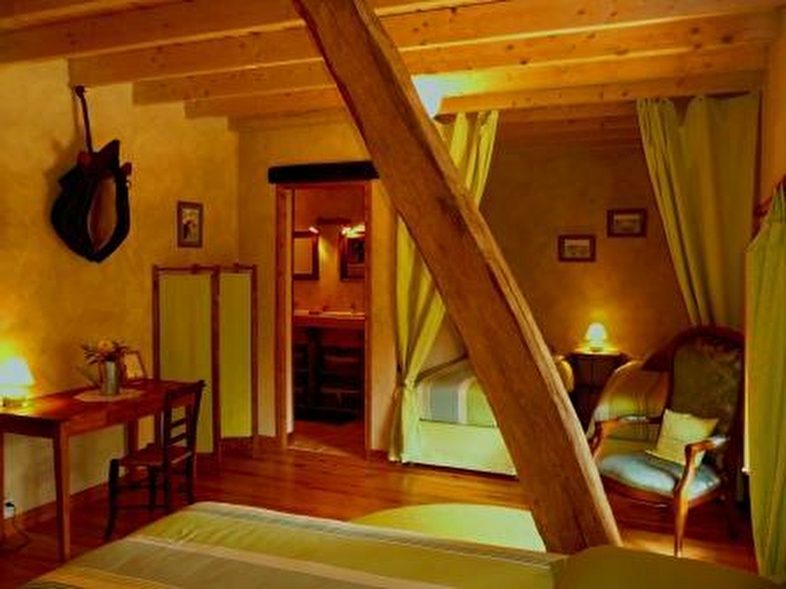 Propriété située au milieu d'une clairière à l'orée de la forêt, disposant d'une vue panoramique sur la nature, sérénité et calme absolus. Au rez-de-chaussée, une salle de séjour et de repas avec cheminée, un coin cuisine à disposition des hôtes. Jardin privatif à disposition.