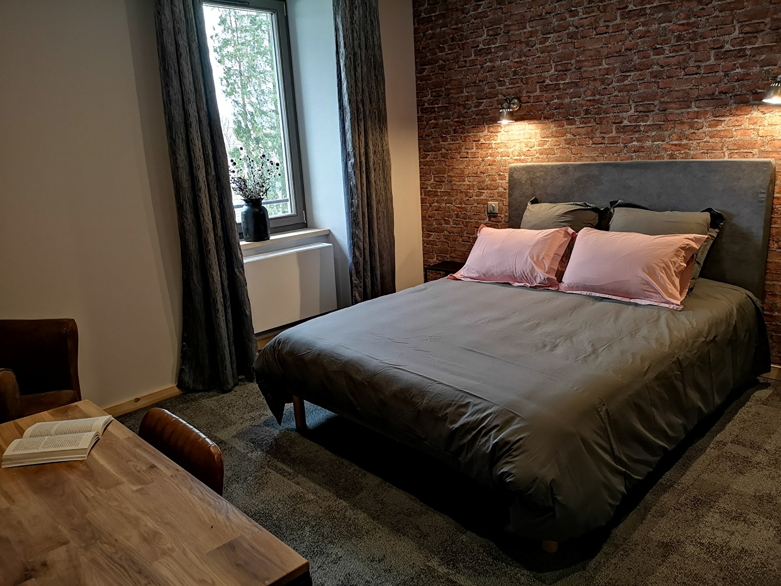 La chambre "A l'état brut" de 24m2 pour 2 personnes : Bois, brique et décoration industrielle pour construire de jolis rêves dans cette chambre confortable.