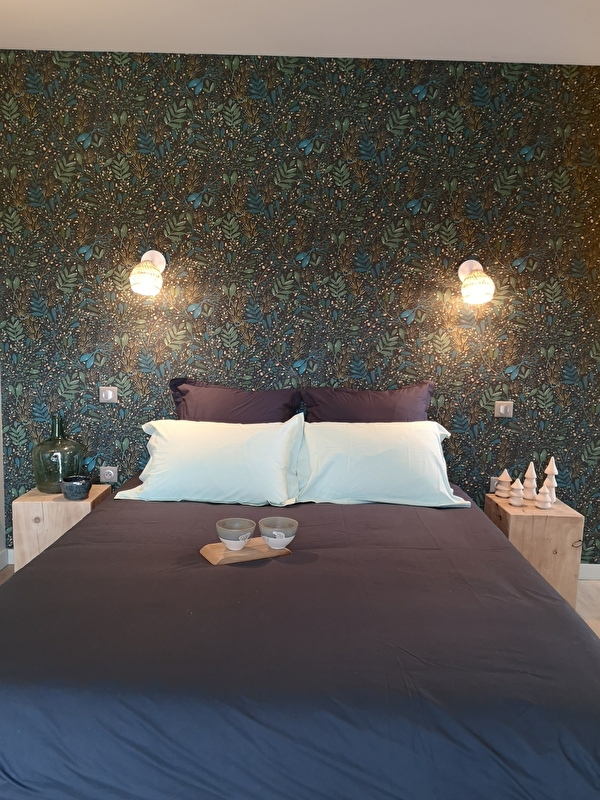 La chambre "Côté Jardin" de 25m2 ensoleillée pour 2 personnes est située au rdc de la maison, avec terrasse au cœur du jardin. Cette chambre est accessible aux personnes à mobilité réduite.