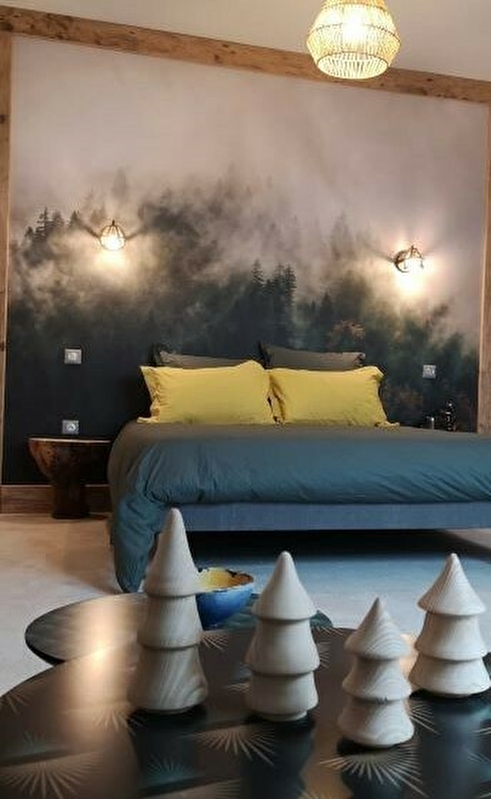 La chambre "Trémontagne" de 48m2 pour 4 personnes (2 adultes et 2 enfants) est composée d'un lit double et un lit 140X190 "coin cabane", idéal pour 2 enfants.