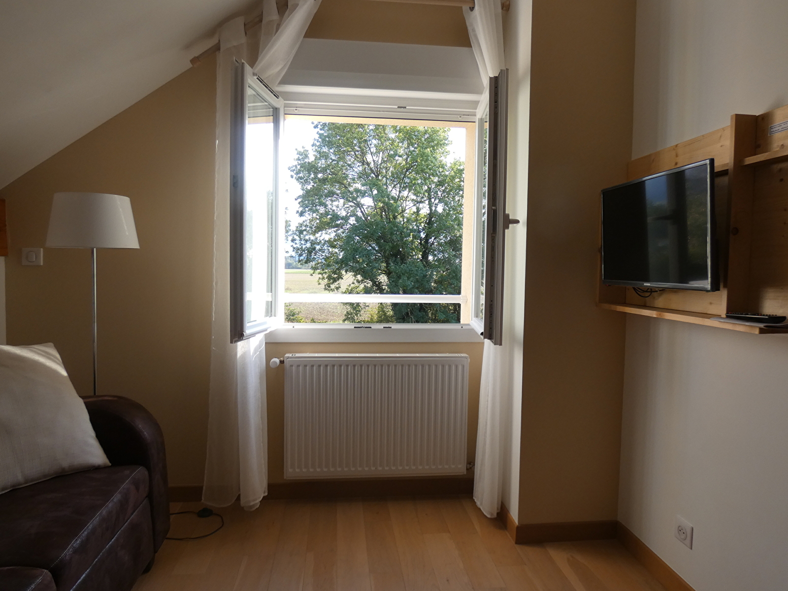 Au cœur du Jura Bressan, à 13 km de Lons-le-Saunier, nous vous accueillons dans une grande chambre confortable pour 2 personnes avec coin salon + une autre chambre pour 2 personnes du même groupe (sdb et WC commun) au 1er étage.