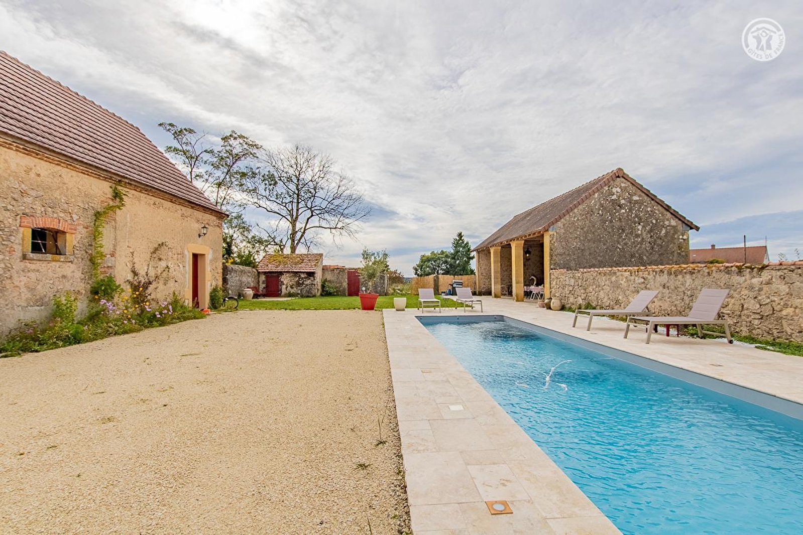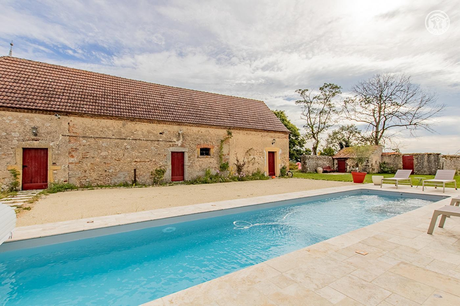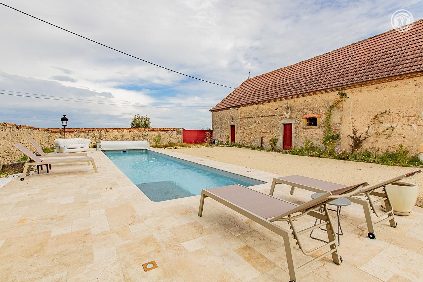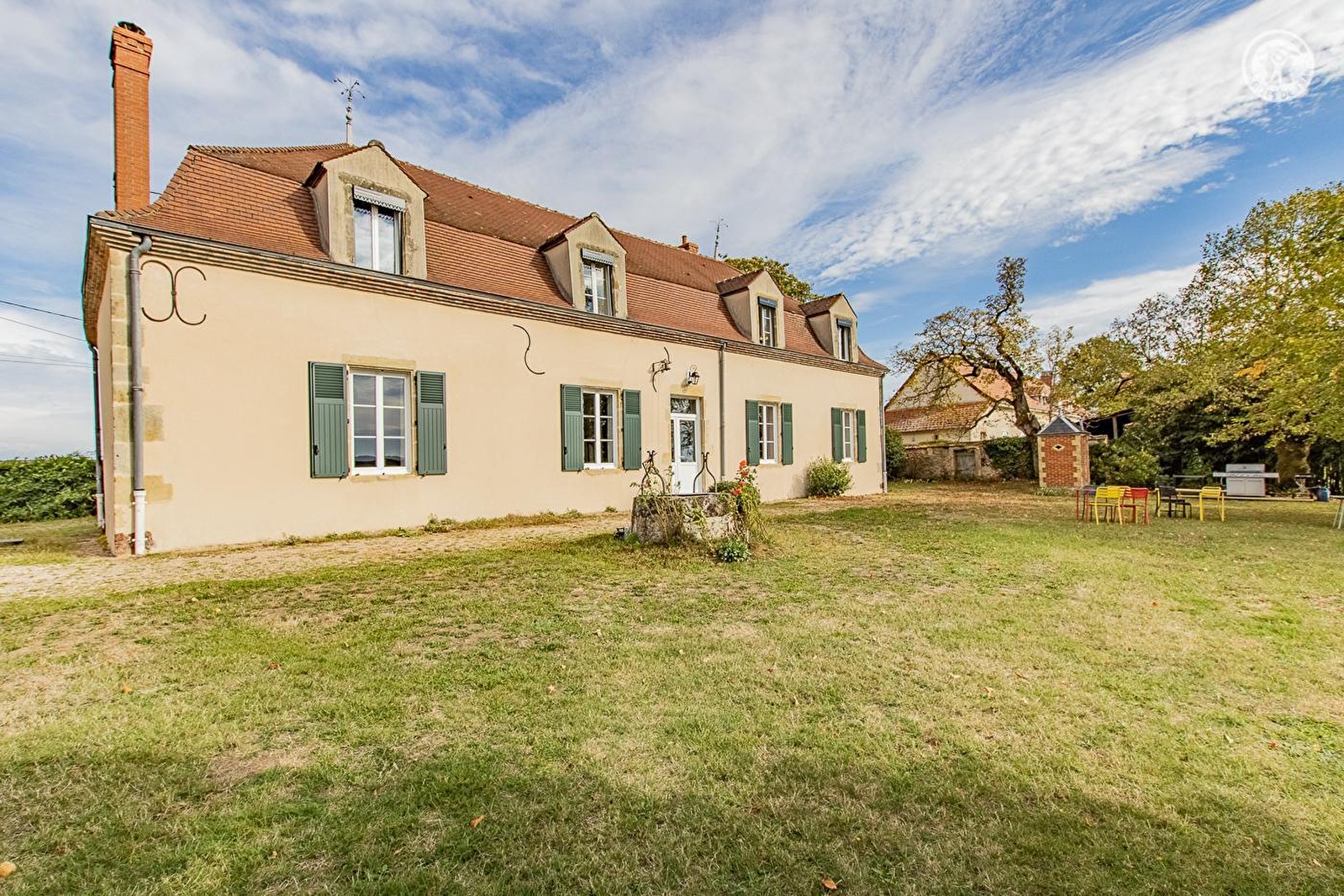 Cécile & Oleg vous ouvrent les portes d'une ravissante authentique demeure "de maître" de caractère du XVIIIe restaurée avec soins, pétrie de charme & d'histoire, lovée au calme en pleine campagne charolaise vallonnée sur une propriété privée de 10 000m² (en large partie occupée en prairies avec des moutons), au sein d'un paisible hameau rural sis à 2.5 km du petit village typique de Neuvy-Granchamp (connu pour son très réputé musée charolais du machinisme agricole, unique en Bourgogne / + de 500 machines anciennes). Totale tranquillité, blotti en promontoire & "belvédère panoramique" sur un plateau sud, au creux du sublime bocage local, à deux pas d'un bucolique étang de 12 ha (lieu de pêche renommé & site naturel) & proche d'un vaste espace forestier sauvage. Magnifique écrin champêtre & naturel préservé. Cadre ultra reposant. Agréable & intimiste jardin aménagé (2000m²) doté d'une belle piscine chauffée (12x3m) attenante à un terrain de pétanque et une vaste terrasse abritée (ancien abri à calèches parfaitement conservé). Superbe vue dégagée sur la campagne environnante avec les monts du Forez & le Massif central en toile de fond. Suite de très bon confort. Chaleureux cachet campagnard aux accents "bourgeois" cossus & raffinés, conjugué à l'âme dépaysante d'une ancienne demeure. Ambiance douillette & cosy. Beaucoup de charme.