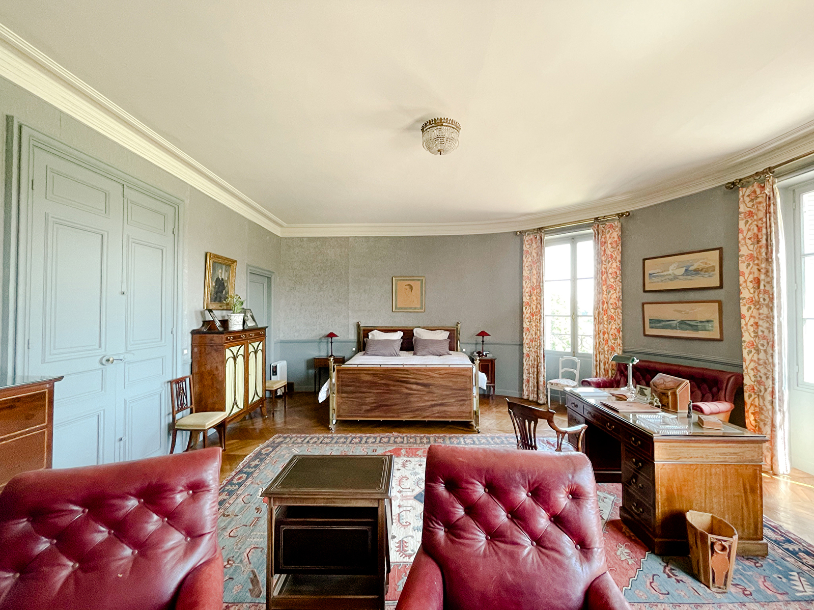 Au sein du château, 15 personnes peuvent séjourner dans des chambres luxueuses entièrement rénovées. La décoration, inspirée de celle d’autrefois, vous fera voyager dans le passé avec ses hauts plafonds, ses moulures, ses boiseries, ses cheminées et ses parquets. Sur les deux étages principaux du château, 3 chambres et 2 suites, chacune avec salles de bain privatives, vous accueillent.