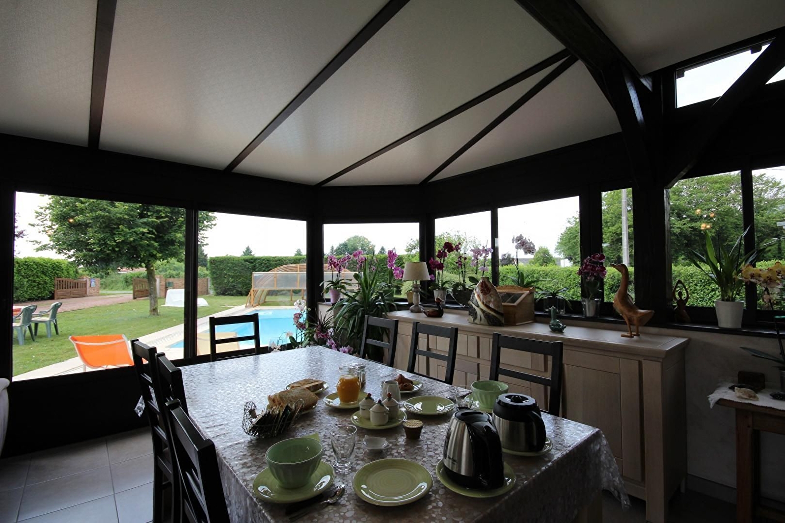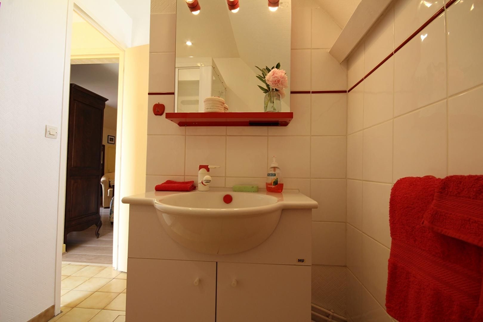 Cette maison à proximité d'une exploitation agricole avec une cour et un jardin clos fleuri, très confortable, comprend une chambre familiale au 1er étage avec accès indépendant : 2 chambres (1 chambre 1 lit 120*190 et 1 chambre 1 lit 140*190), sanitaires privatifs (douche et wc), télévision à écran plat. Internet accessible dans les chambres. Les fenêtres sont équipées de moustiquaires pour votre confort.