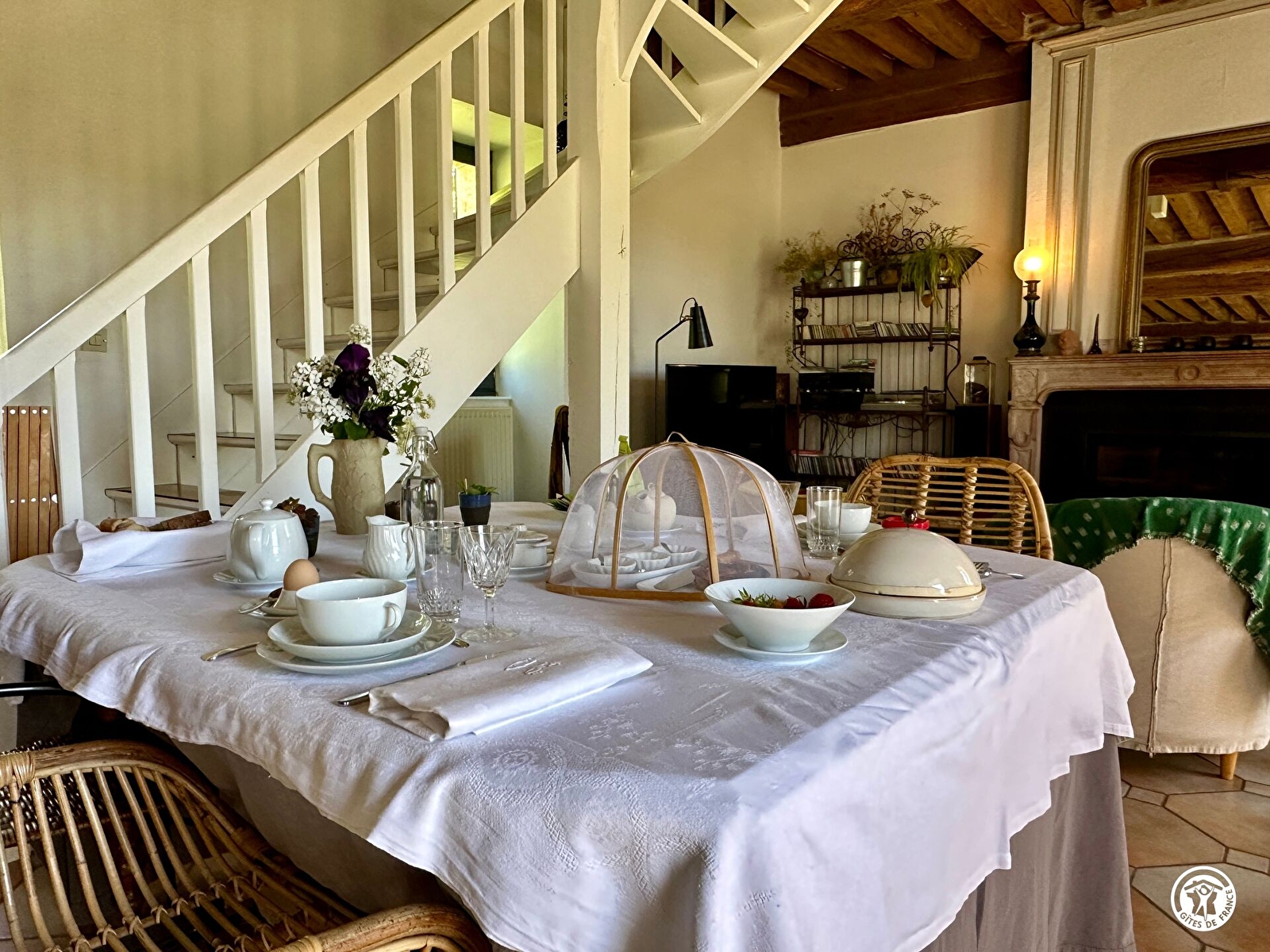 Aux beaux jours, savourez un délicieux petit déjeuner maison, dans le beau jardin champêtre de 3000m2, véritable havre de paix fleuri et arboré. Lorsqu’il fait plus frais, c’est près du feu de bois, dans la chaleureuse salle à manger, accessible uniquement pour le petit déjeuner, que vous commencerez la journée.