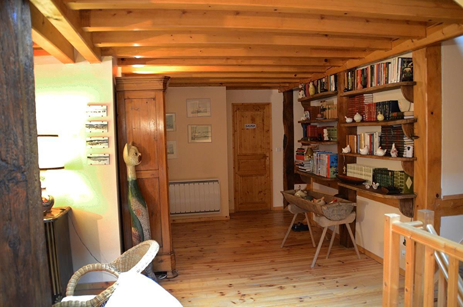 Cinq chambres aménagées dans une ancienne ferme. Calme et confort, sauna, salle de bains, salon avec télévision, WIFI, jardin avec terrasse, piscine (en extérieur et non chauffée). Mise à disposition de VTT.