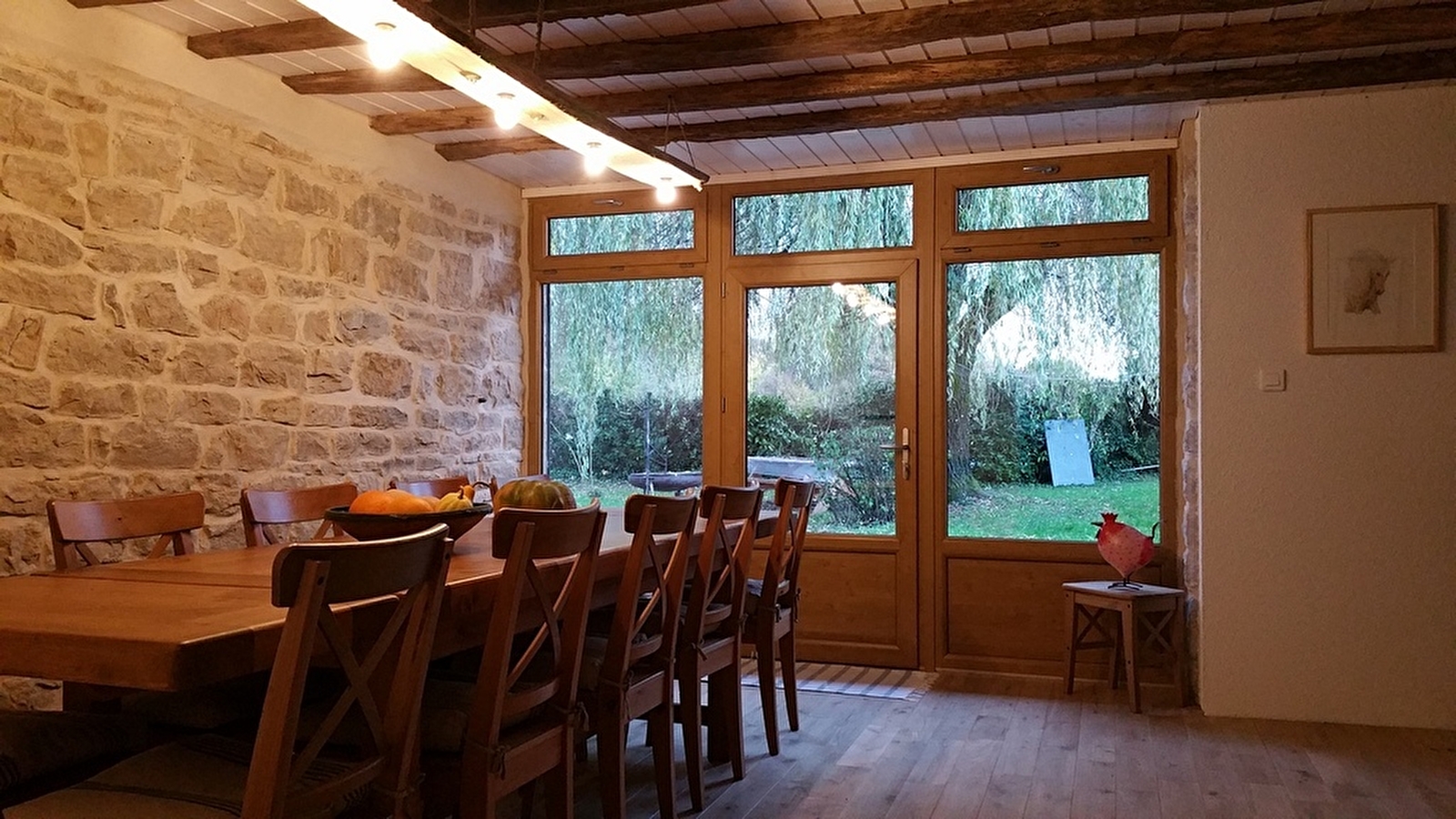 Ici nous pouvons vous héberger en gîte ou en chambres d'hôtes et, si vous le désirez, partager notre table pour les repas du soir.