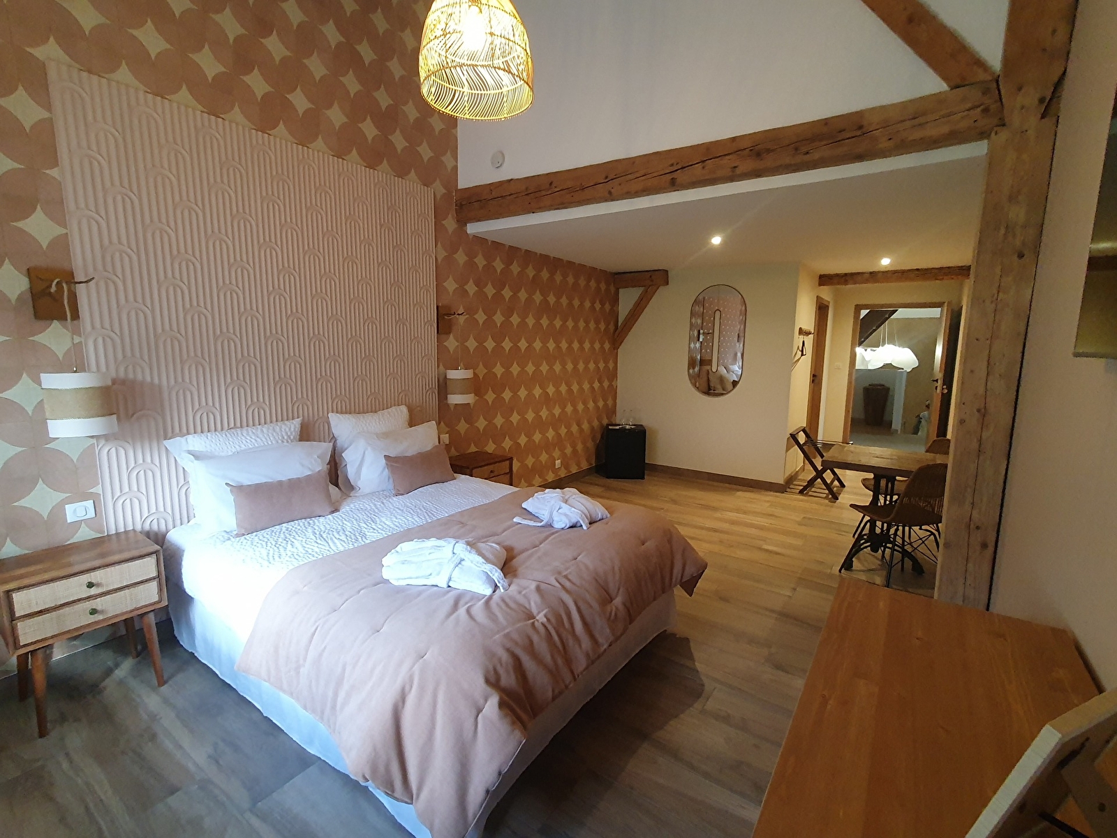 Nous avons conçu chaque chambre avec soin alliant authenticité et confort moderne. Toutes les poutres et hauteurs sous plafond ont été conservées et mises en evidence.