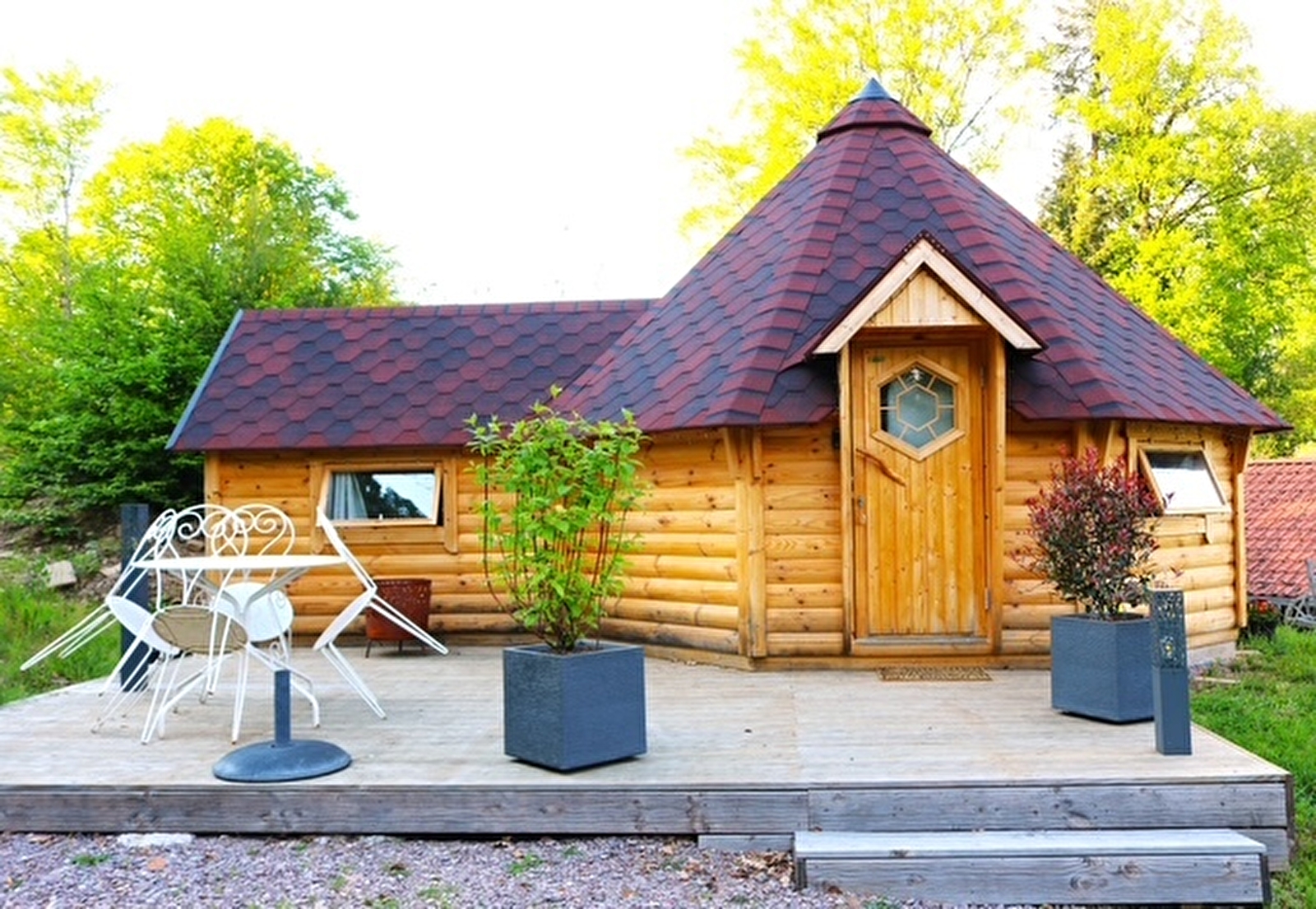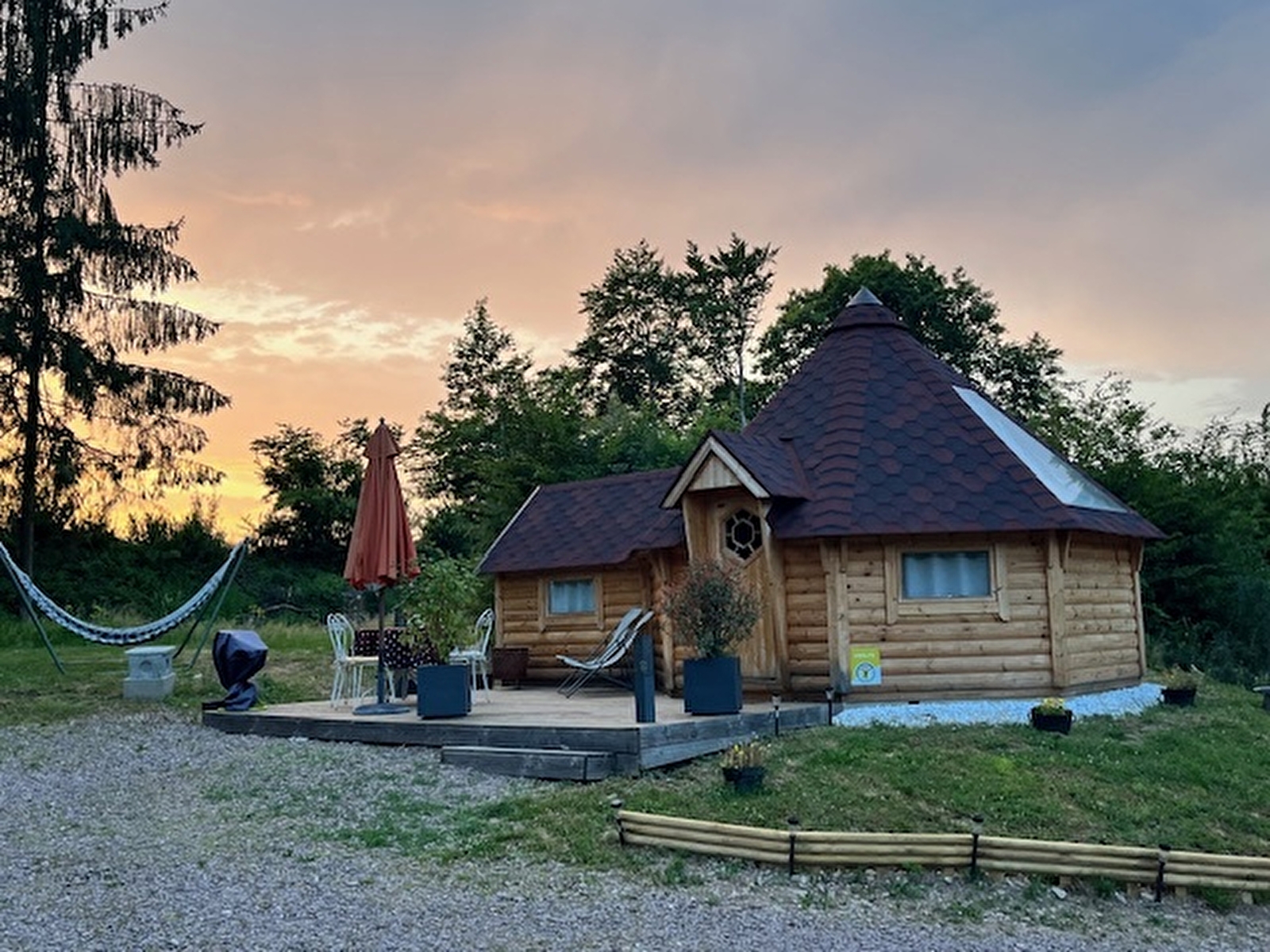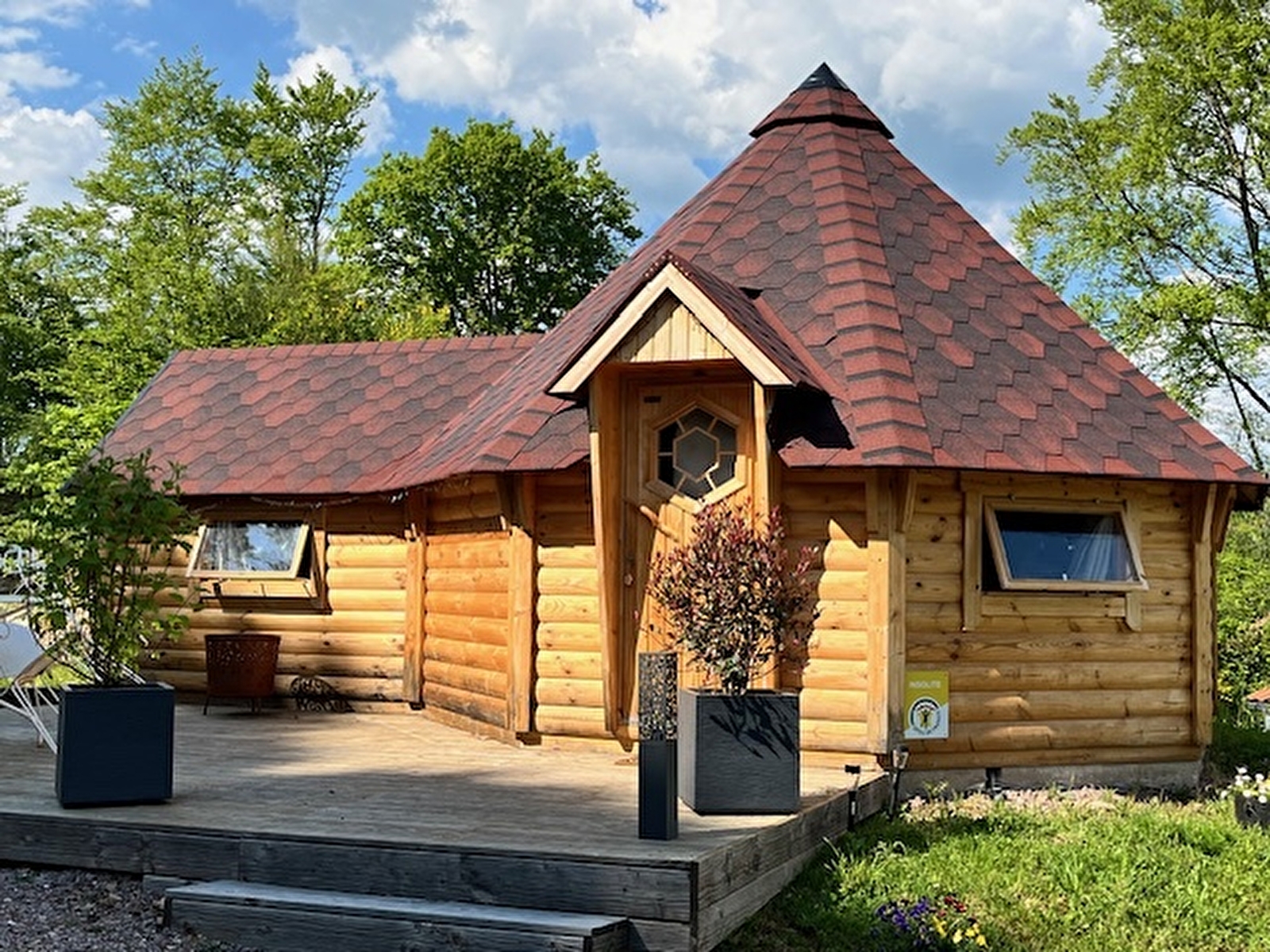 KOTA GRI’HÔTES est un hébergement insolite tout confort et cocooning surplombant notre terrain, entouré d’arbres et de verdure.