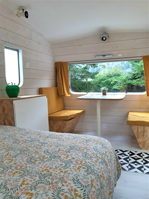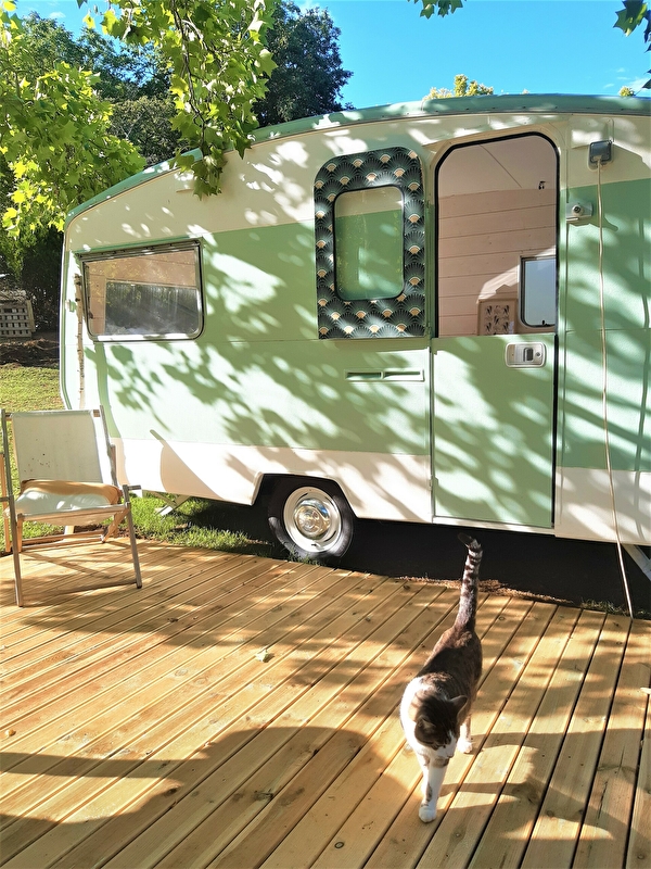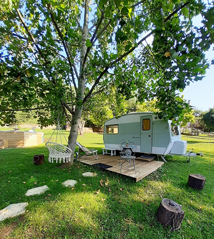 La caravane, entièrement rénovée, est un lieu insolite, décorée dans un esprit bohème et chaleureux pour vous plaire, dans un respect maximum de l'environnement (matières bio et éco-responsables).