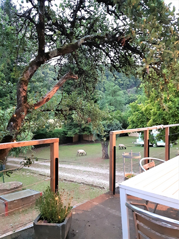 Nos animaux vivent en liberté sur cette parcelle (brebis, chien, chats et poneys à proximité), et partageront avec vous leur pâture...