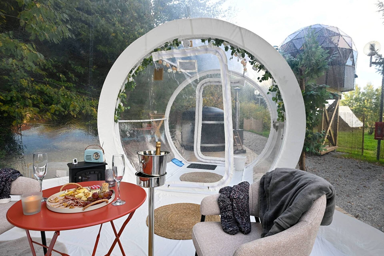 Vivez une expérience unique dans le dôme d’Oriana, un cocon insolite imaginé pour deux personnes. Sa transparence vous plonge au cœur de la nature et vous invite à une nuit féérique, entre confort et sérénité. Profitez pleinement de votre bain nordique privatif et de votre terrasse exclusive pour une parenthèse de détente inoubliable.