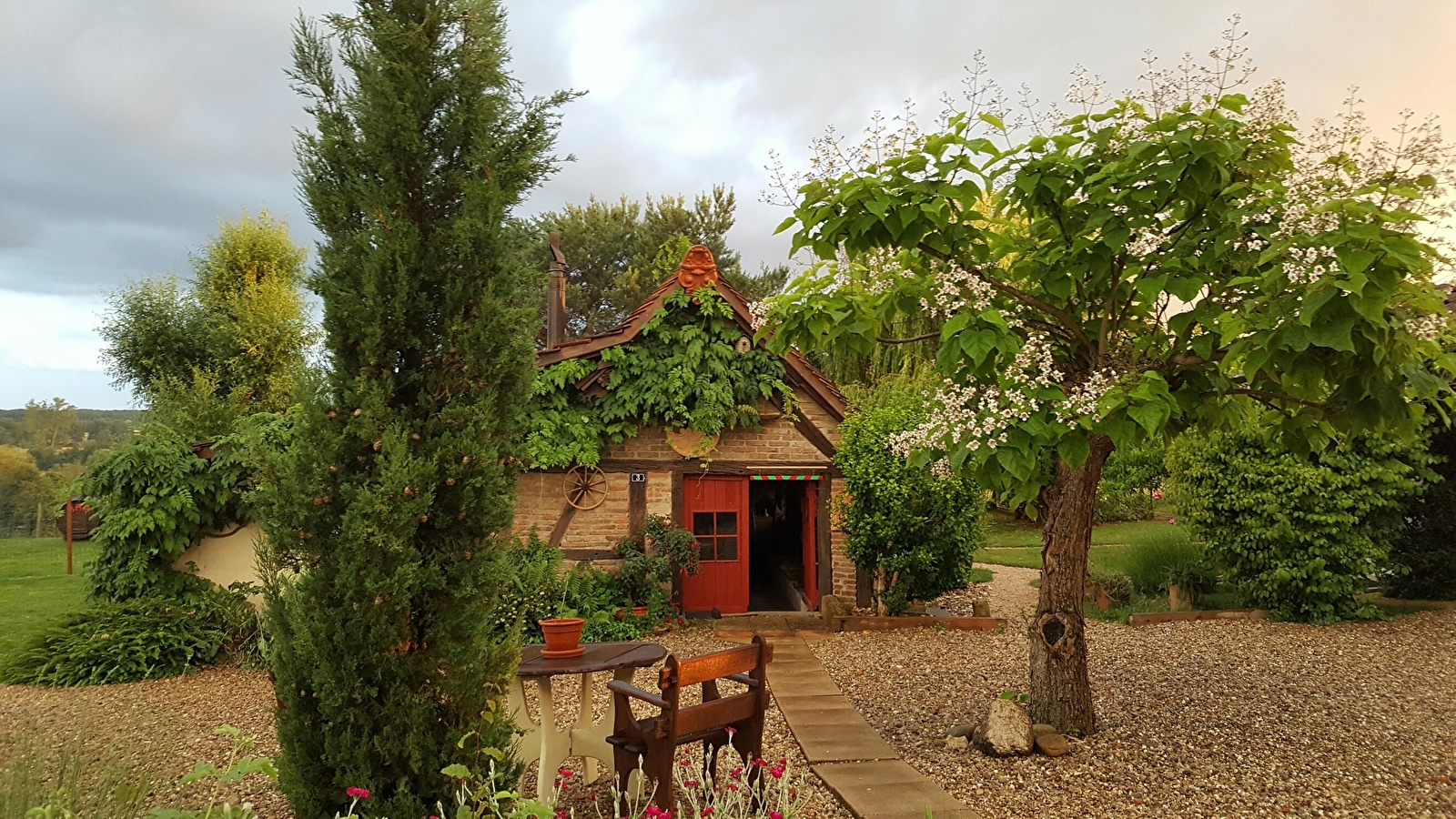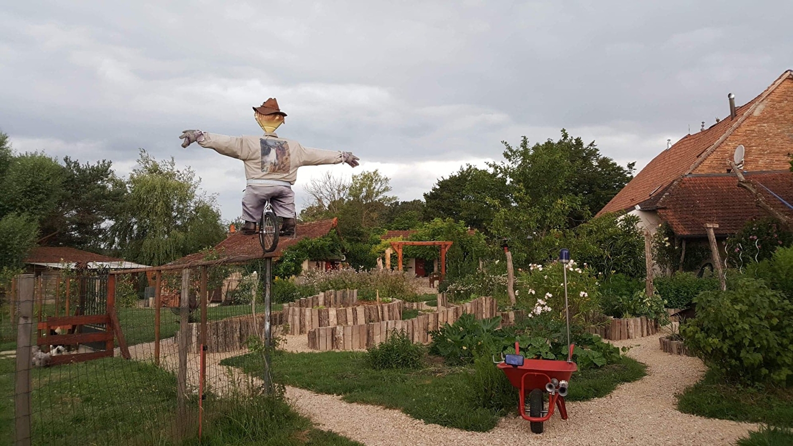 Bienvenue dans notre petit monde à nous où il n'est pas facile de garder les pieds sur terre. Il faut venir voir de près et prendre du recul pour basculer dans notre univers. Brutus le gardien...La Chaise Louis caisse 1er...Arthur le surveillant général...La catapulte 2018... Le jardin à la française, enfin presque...et bien d'autres surprises. Toute l'équipe à 2,4,6,8, 1000 pattes vous invite à partager la gamelle gourmande de notre cheffe à notre table d'hôtes. Relais motards et langue des signes.