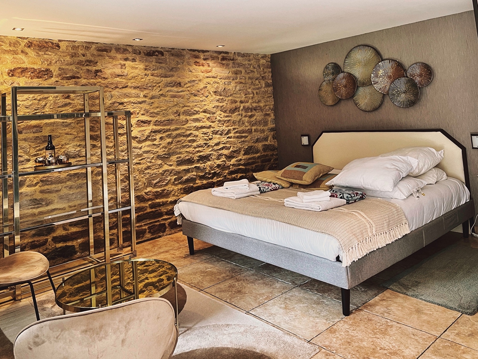 Les hébergements se composent de trois chambres raffinées avec salle de bain privative, ainsi que de deux suites équipées d’une kitchenette et d’un salon, idéales pour accueillir entre deux et quatre personnes. Les groupes peuvent profiter d’une grande cuisine entièrement équipée et d’une salle à manger conviviale, propices aux moments partagés en toute sérénité.