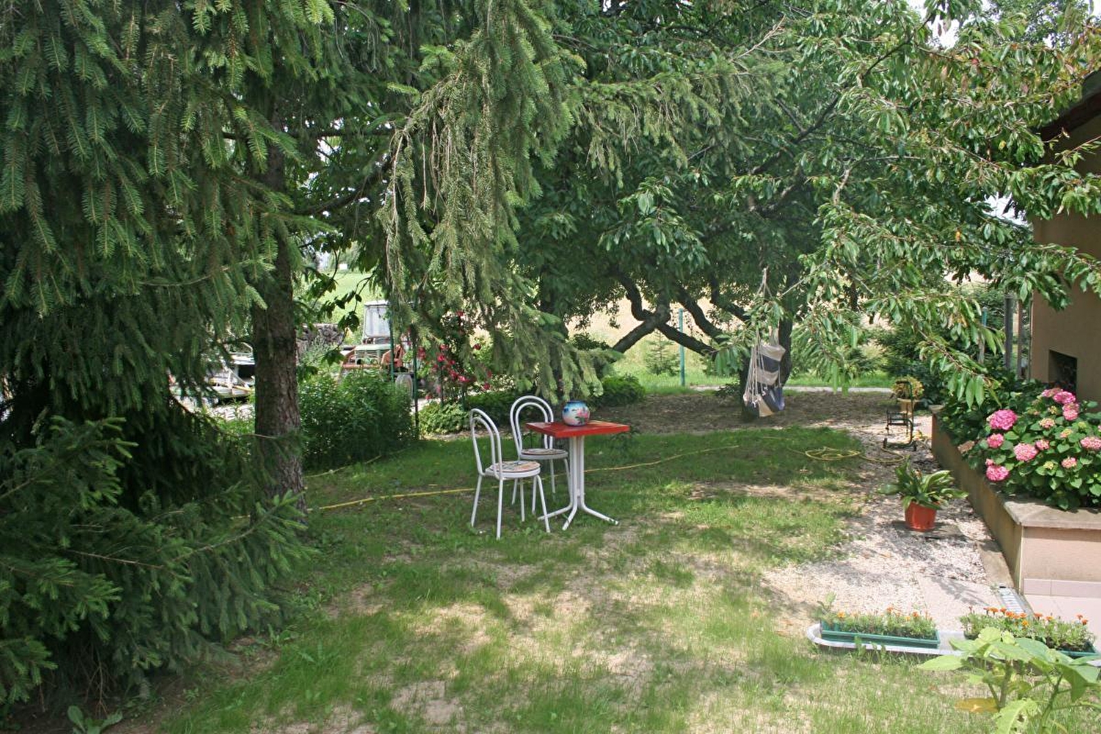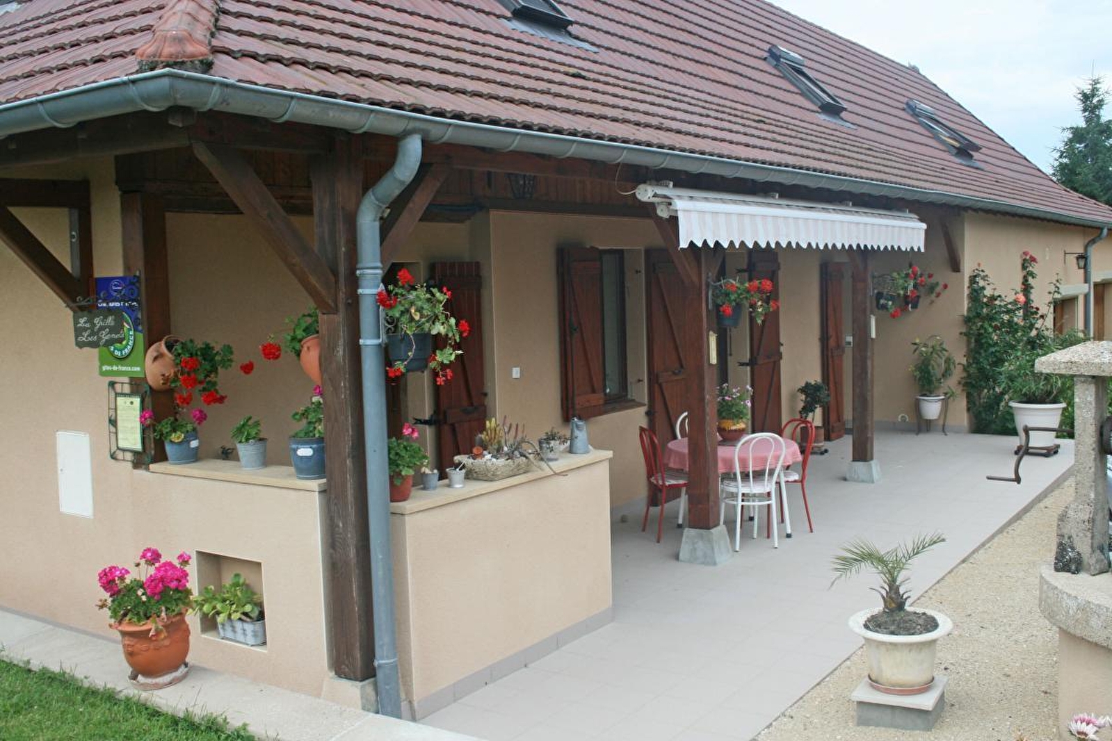 Josette & Christian vous accueillent au sein d'une charmante authentique "fermette" traditionnelle de pays datant du XIXème siècle soigneusement restaurée, blottie au calme en pleine douce campagne louhannaise, au sein d'un paisible petit hameau rural "dispersé". Absolue tranquillité, niché en lisière de champs de culture & douces prairies boisées, sur un vaste plateau vallonné, à deux pas de belles forêts sauvages & de bucoliques étangs de pêche, au creux d'un espace protégé en ZNIEFF pour ses remarquables richesses faunistiques & floristiques, non loin des rives de la Seille classées en "Zone Natura 2000" pour leurs remarquables écosystèmes (réserve d'oiseaux migrateurs, espèces végétales rares, nombreux poissons dont les célèbres silures, animaux & faune sauvage…), apaisant écrin préservé à parcourir lors de relaxantes balades à pied ou vélo. Vaste propriété soignée & très fleurie de 1 ha traversée par un petit ruisseau (à l'écart), comprenant un agréable jardin engazonné (avec piscine hors-sol, balançoire & toboggan), divers espaces de détente ainsi qu'un vaste verger fruitier (pommiers, poiriers, cassissiers, cerisiers, framboisiers, pèches de vignes etc… / cueillette possible sur place). Doubles terrasses abritées (est & ouest). Spacieuse suite familiale totalement indépendante lovée sous les toits en mode "cocon cabane". Chaleureux cachet campagnard un brin rustique.