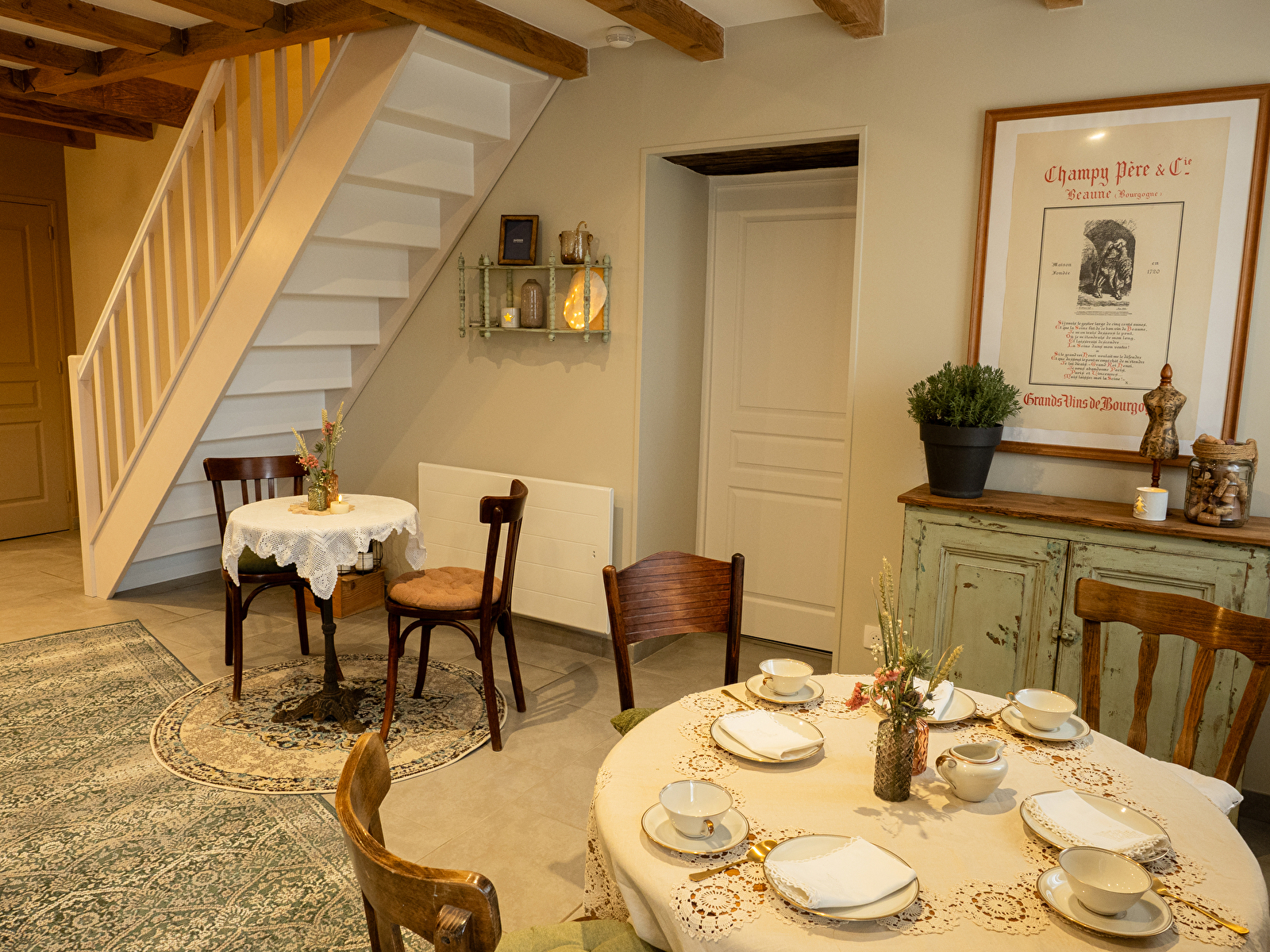 Située entre la Côte Chalonnaise et la Côte-d'Or, à quelques kilomètres de Meursault, la Longère de Bourgogne, avec ses 3 chambres complètement rénovées, vous accueille dans un cadre chaleureux à la fois moderne et authentique. Parfait pour un séjour alliant bien-être, détente, sport, gastronomie, œnologie et découverte des produits du terroir avec un spécialiste de la Bourgogne. Une capacité d'accueil de 9 personnes répartie sur 3 chambres, nous permet de vous accueillir en famille ou entre amis. Le petit déjeuner constitué de produits locaux et fait maison est servi en salle ou en terrasse lorsque le temps le permet. Nous saurons vous guider et vous conseiller les bonnes adresses pour vos activités diverses et variées. Possibilité de privatiser le lieu sur simple demande.