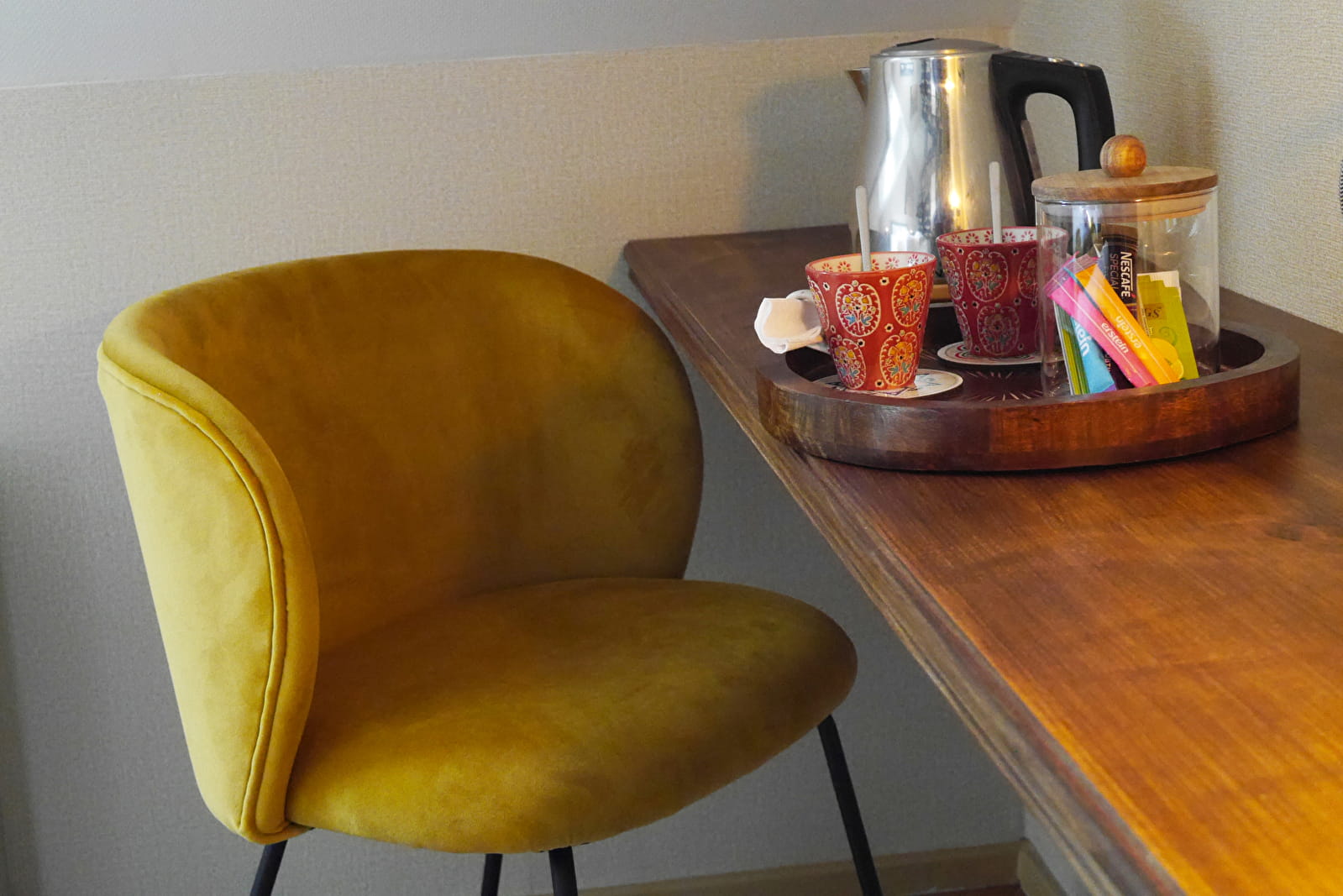 Nos chambres sont situées à l'étage. Elles sont mansardées, climatisées, équipées de Vélux avec rideaux extérieurs solaires.