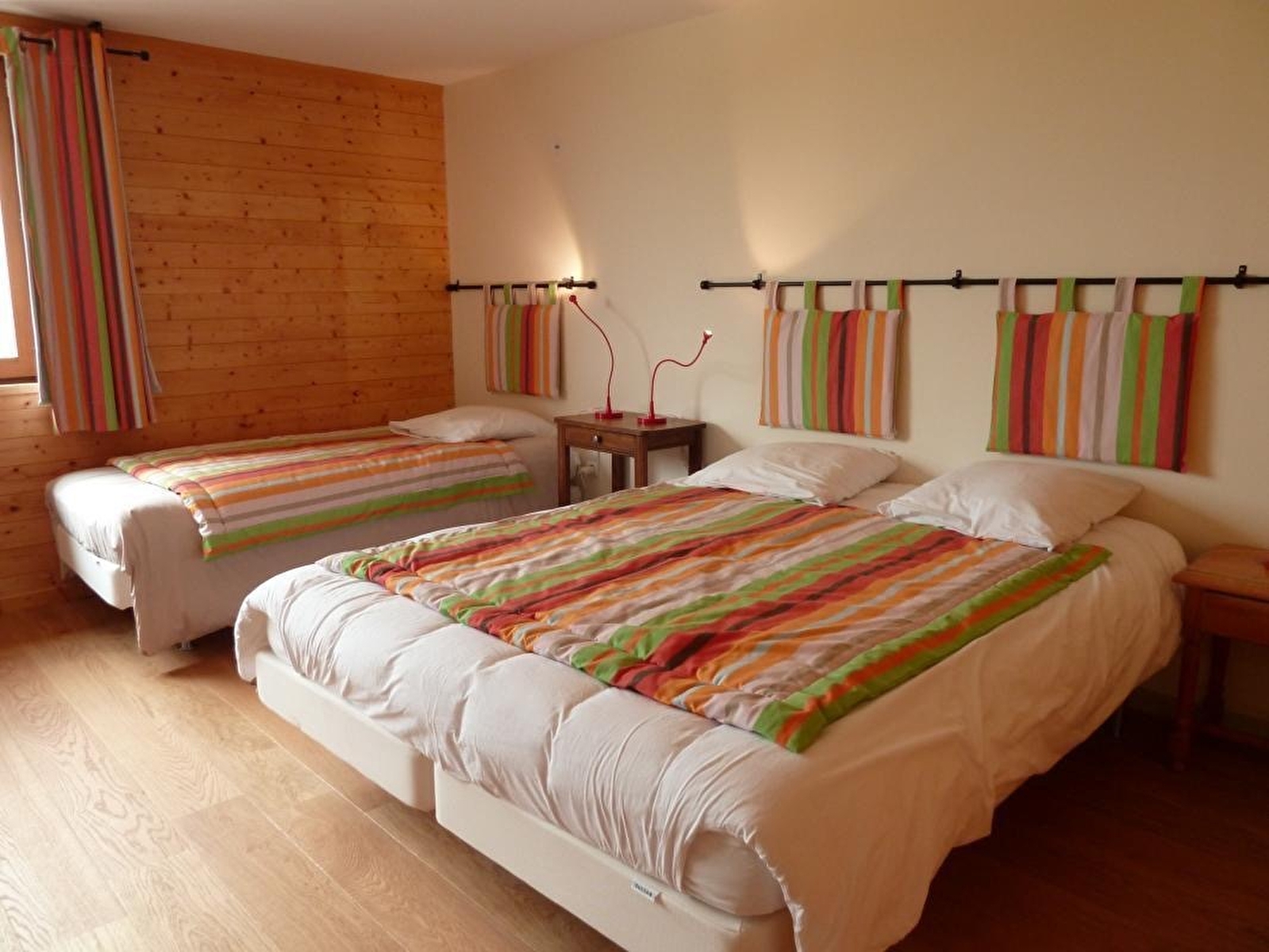 Sur les hauteurs de Bray, bénéficiant d'une vue panoramique superbe sur la vallée du Clunysois, cette ancienne ferme vous propose 5 chambres d'hôtes dont 2 suites familiales (chacune composée de 2 chambres avec 1 lit double et 2 lits jumeaux). 2 chambres sur 5 sont au RDC (1 est même accessible aux personnes à mobilité réduite). Toutes les chambres ont un accès indépendant de l'habitation des propriétaires, et possèdent leurs sanitaires privatifs. Accès internet. Parking dans la propriété. Maison d'hôte labellisée "Ecogite" (qualification environnementale du label Gîtes de France). A disposition 2 prises de recharge pour véhicules électriques.
