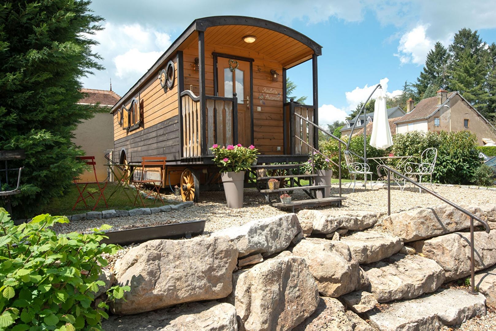 Composition : Maison d'hôtes comprenant 3 chambres avec TV & sdb privées (dont 2 roulottes) sur propriété abritant 2 gîtes. Wifi. Chauffage central gaz (électrique dans roulottes). Chambre double au 3ème étage (2 lits 1 p. 90x190cm) avec sdb (baignoire sabot/Wc indépendant) & kitchenette complète. 2 roulottes familiales dont 1 climatisée (lit 2 p. 160x200cm + banquette modulable dans chacune / lit 1 p. 90x210cm ou lit 2 p. 140x190cm) avec sde (douche/wc), kitchenette complète, terrasse (gravier) & jardinet privés. Pièce de vie commune en léger "sous-sol" pour petits-déjeuners. Jardin clos (1500m²) avec terrasse sous gloriette & piscine (3.5 x 7m) en commun. Parking privé. Local vélos. Commodités à 300m. Supermarché 1.5 km.