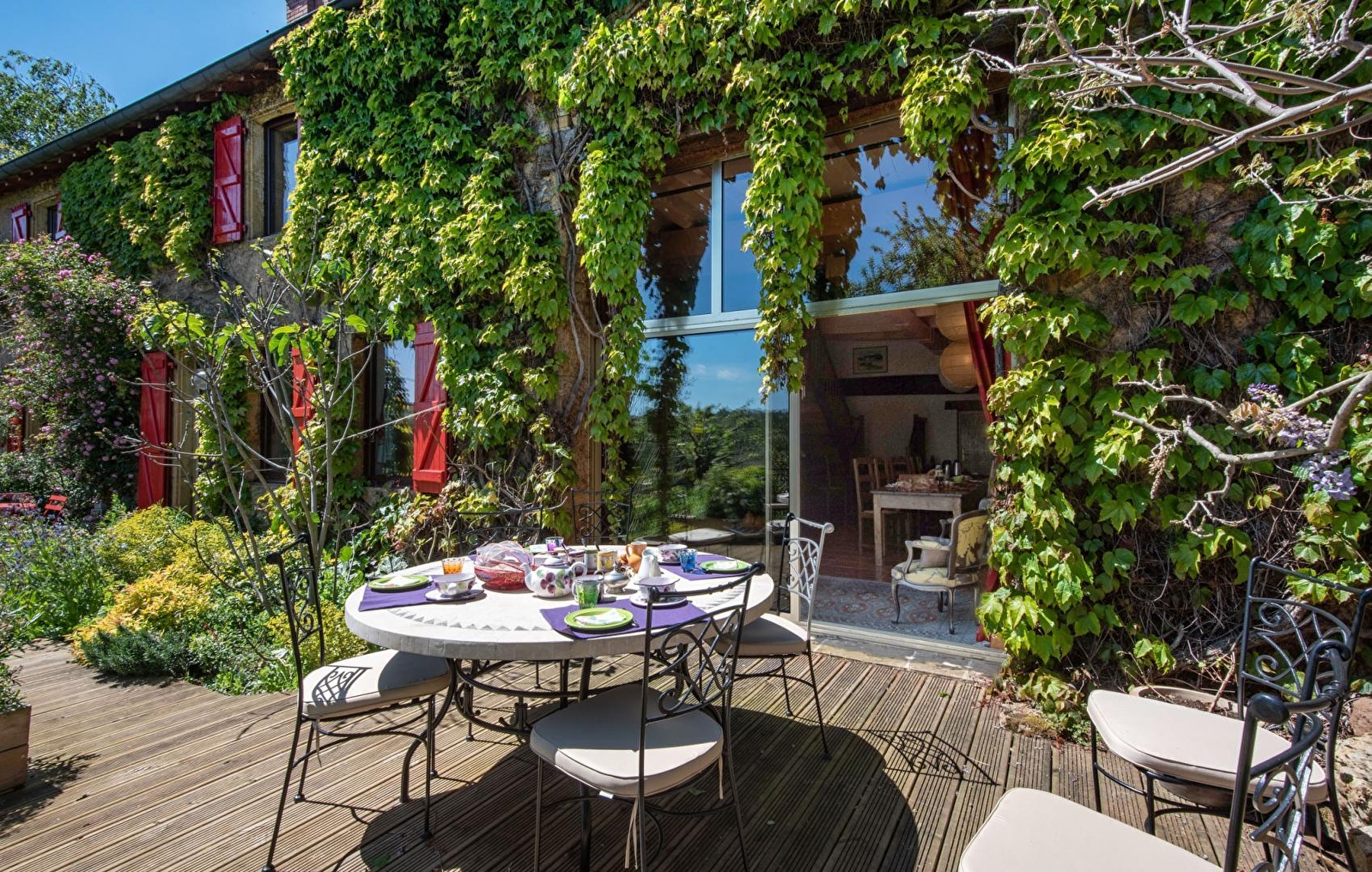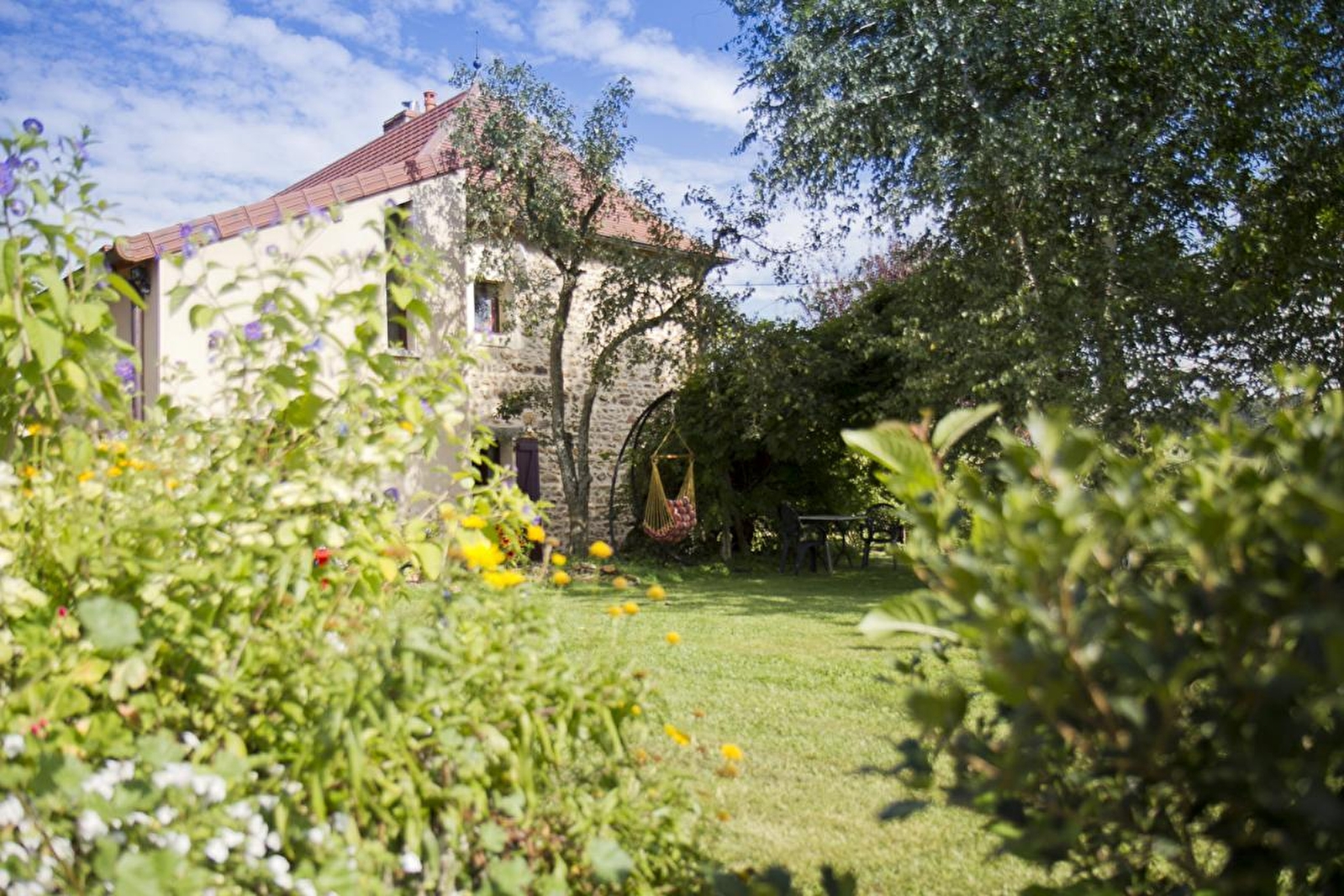 Ayant parcouru le monde et vécu en Afrique & Asie (source d'inspiration "déco" des lieux), Martine vous ouvre les portes d’une élégante authentique ferme traditionnelle du XIXe soigneusement restaurée, pétrie de charme & caractère, blottie en "belvédère panoramique" sur une colline exposée au sud, dominant un bucolique vallon de prairies boisées. Totale tranquillité au sein d’un paisible hameau "dispersé", niché en pleine campagne préservée en lisière de pâtures (avec les vaches charolaises comme voisines), au creux du sublime bocage brionnais, sur un vaste espace naturel protégé en ZNIEFF & Zone Natura 2000 (pour ses richesses floristiques & faunistiques). Magnifique écrin de nature & verdure. Cadre & site enchanteurs. Superbe vue dégagée. Chambres de très bon confort lovées sous les toits en mode "cocon", mixant cachet "bourgeois" raffiné & déco "ethnique" soignée (entre Indonésie & Égypte). Agréable jardin soigneusement végétalisé & fleuri, doté d’une belle terrasse exposée, complété par un intimiste espace engazonné paré d’une atypique piscine ronde & d’une terrasse sous tonnelle, sur une vaste propriété de 3 ha, en large partie naturelle.