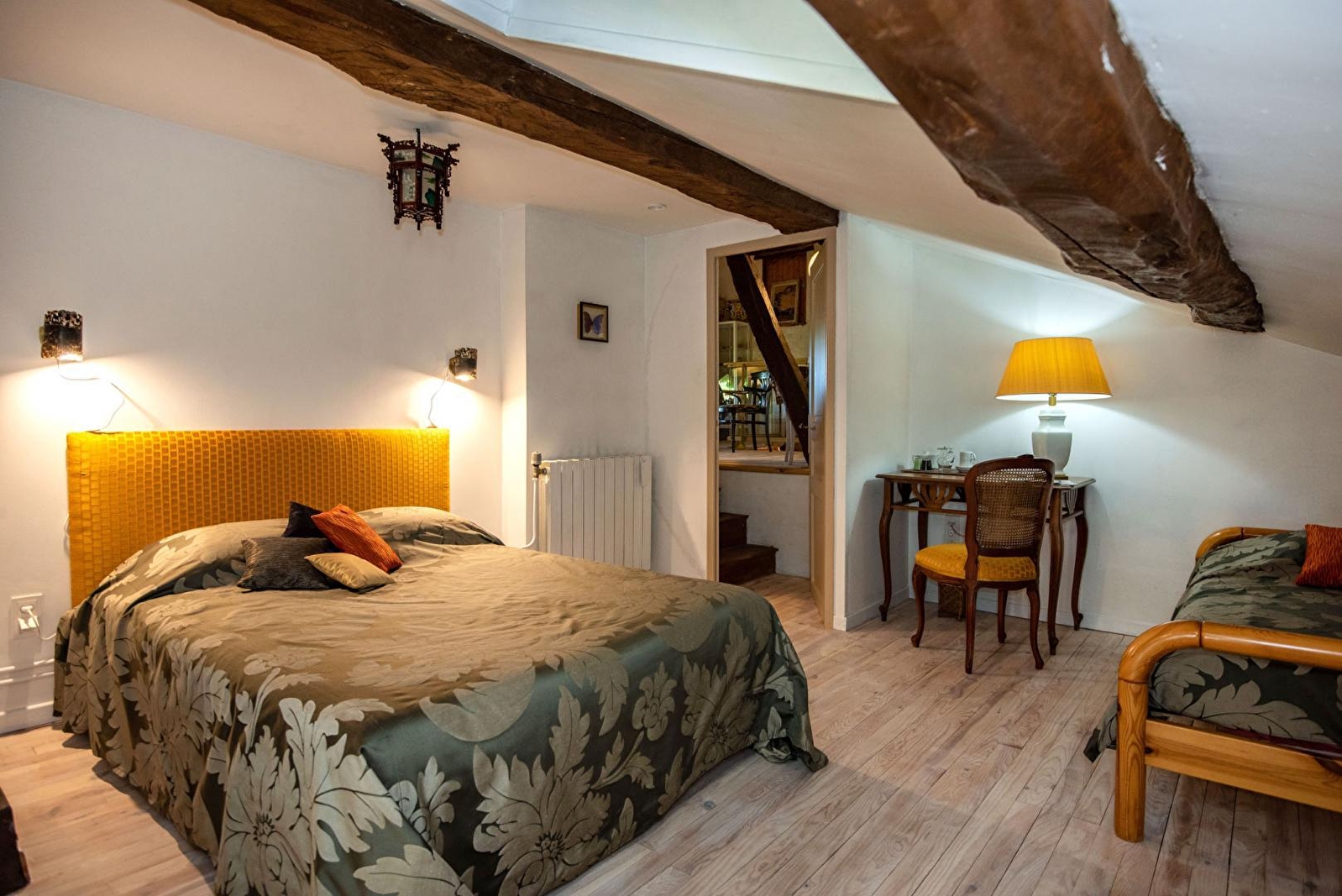 Composition : Accès maison par chemin de terre carrossable sur 50m. Wifi (fibre). Chauffage central fioul. Au 1er étage : salon commun (réfrigérateur et micro-ondes disponibles) + suite composée de 2 chambres indépendantes communicantes par un couloir privé (lit 2 p. 140x190cm / 2 lits 2 p. 140x190cm) avec salle d’eau privative (douche/Wc indépendant) + chambre familiale composée de 2 chambres indépendantes communicantes par l’extérieur par salon commun (lit 2 p. 160x200cm / lit 2 p. 140x190cm + lit 1 p. 90x190cm) chacune avec sde privée (douche/Wc). Petits- déjeuners servis dans pièce de vie propriétaire au rdc (ou sur terrasse aux beaux jours). Jardin + terrasse (x 2) + piscine ronde (8m de diamètre). Terrain (3 ha). Local vélos/motos. Parking privé. Petits commerces 2 km. Commodités dont restaurants & supermarchés 15 km.