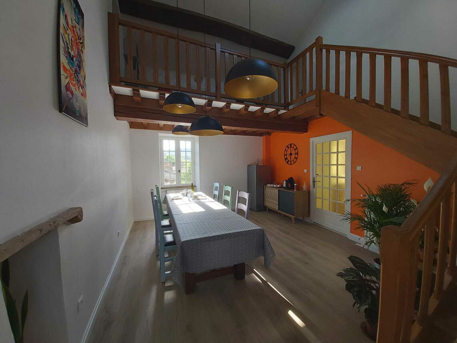 Un accueil chaleureux et décontracté, petits déjeuners pour bien démarrer votre journée et table d'hôtes (sur réservation les lundis, mercredis et vendredis) ou copieuses planches dinatoires voire soirées Pizza au feu de bois (les autres soirs, sur réservation) servis dans la salle à manger ou dans la cour ombragée dès que le temps le permet. Nous proposons au maximum des produits locaux et des producteurs. Nous pouvons également vous proposer un Pique-nique à emporter, soit pour votre journée de balade, soit lors de votre départ (à réserver au plus tard 24h à l'avance).