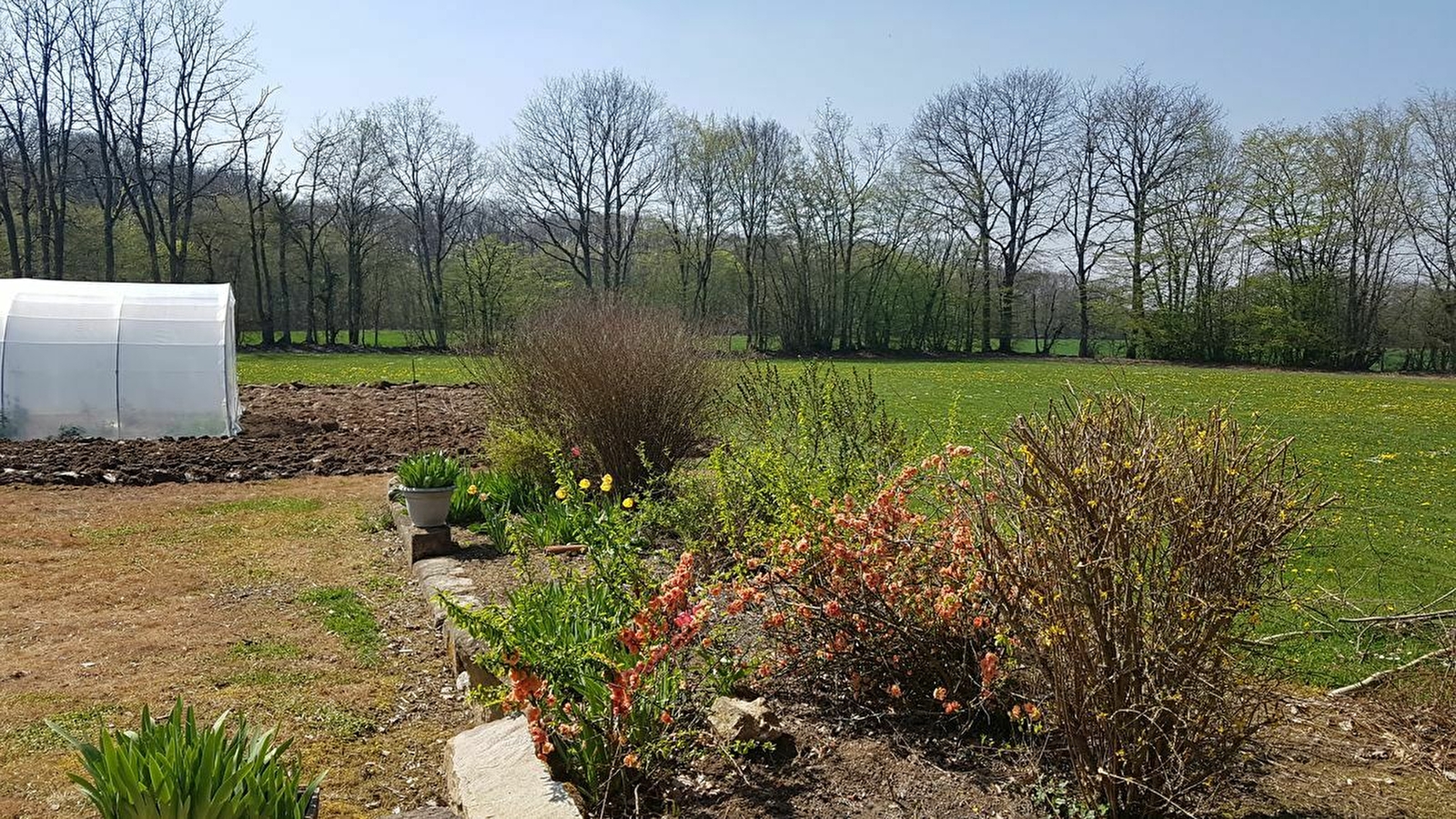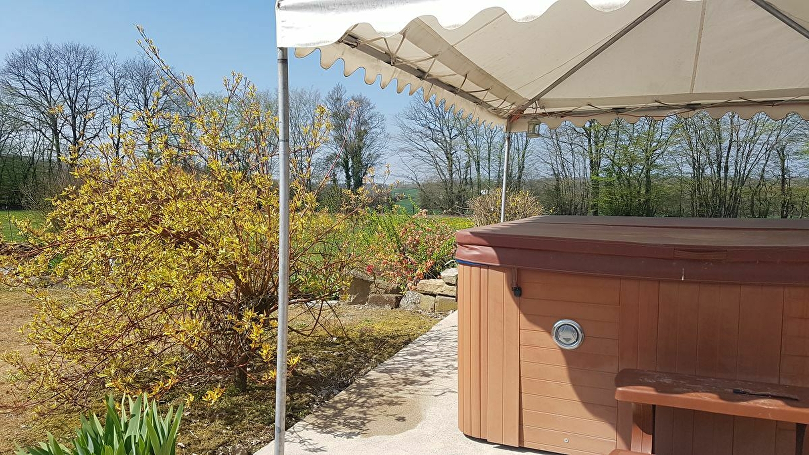 Marie-Paule et Sébastien reçoivent leurs hôtes dans l'extension de leur maison qui comprend une suite parentale (grande chambre à l'étage sous les comble, séjour confortable avec coin tv et coin repas, grande salle de bain avec douche à l'italienne, wc suspendu et meuble vasque). Le parking accueille sans difficulté véhicules légers, véhicules attelés et poids lourds.L'hébergement a un accès indépendant et le terrain de 11000m2 offre un espace idéal pour profiter d'un séjour au calme ... en toute sérénité.