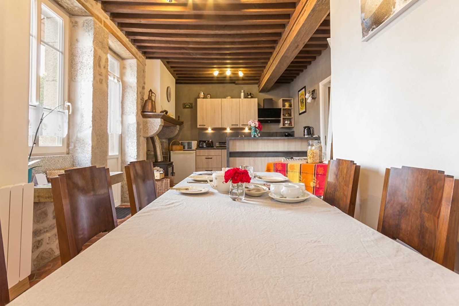 Chaque chambre a un accès direct à la salle des petits déjeuners et à la cuisine mise à votre disposition.
