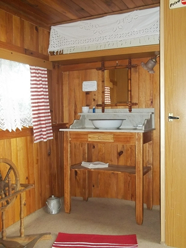 Salle d'eau à l'ancienne (broc et cuvette) dans une caravane annexe, réservée pour vous