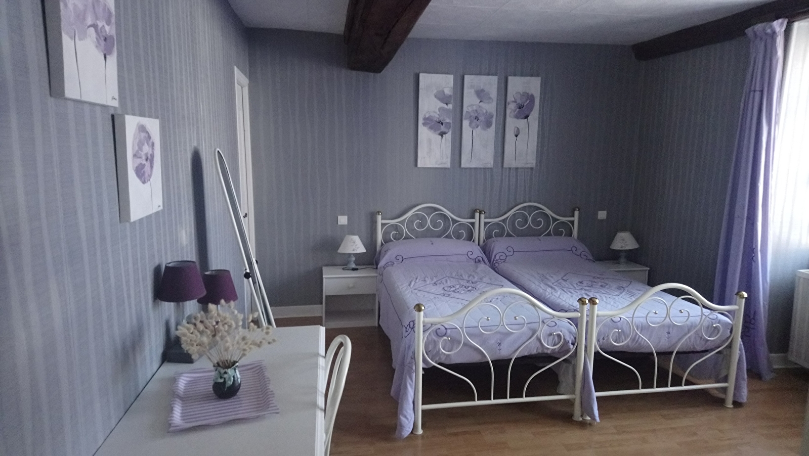 La chambre Bleuet est composée de 2 lits de 90 avec salle de bain avec douche. Nous pouvons exceptionnellement ajouter un lit pliant pour enfant au prix de 10euros. Petit déjeuner compris. Pour les bébés de 0 a 3 ans, lit parapluie gratuit.