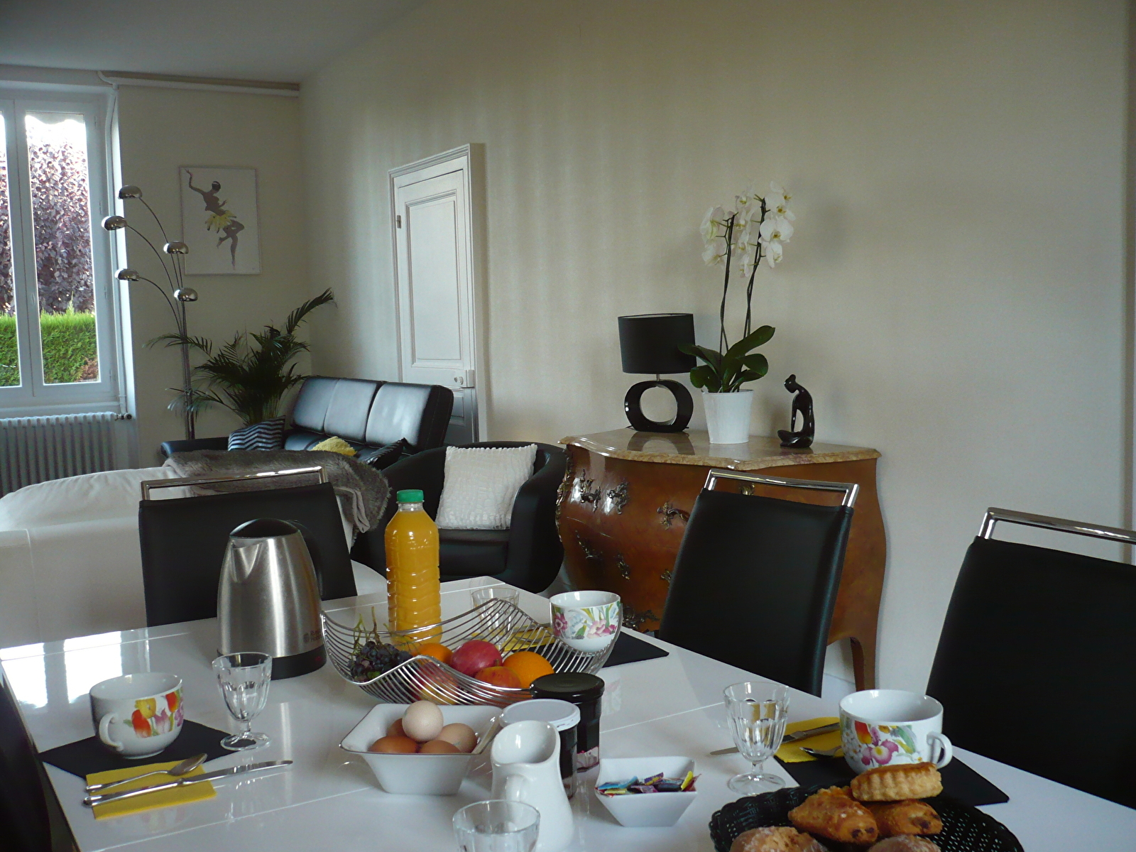 Nous aimons échanger et discuter avec nos hôtes, c'est pour cela que nous proposons de dîner à notre table pour 21.50€ (apéritif, vin offert). Notre cuisine sera simple mais réalisée avec des produits de notre jardin ou de producteurs locaux.