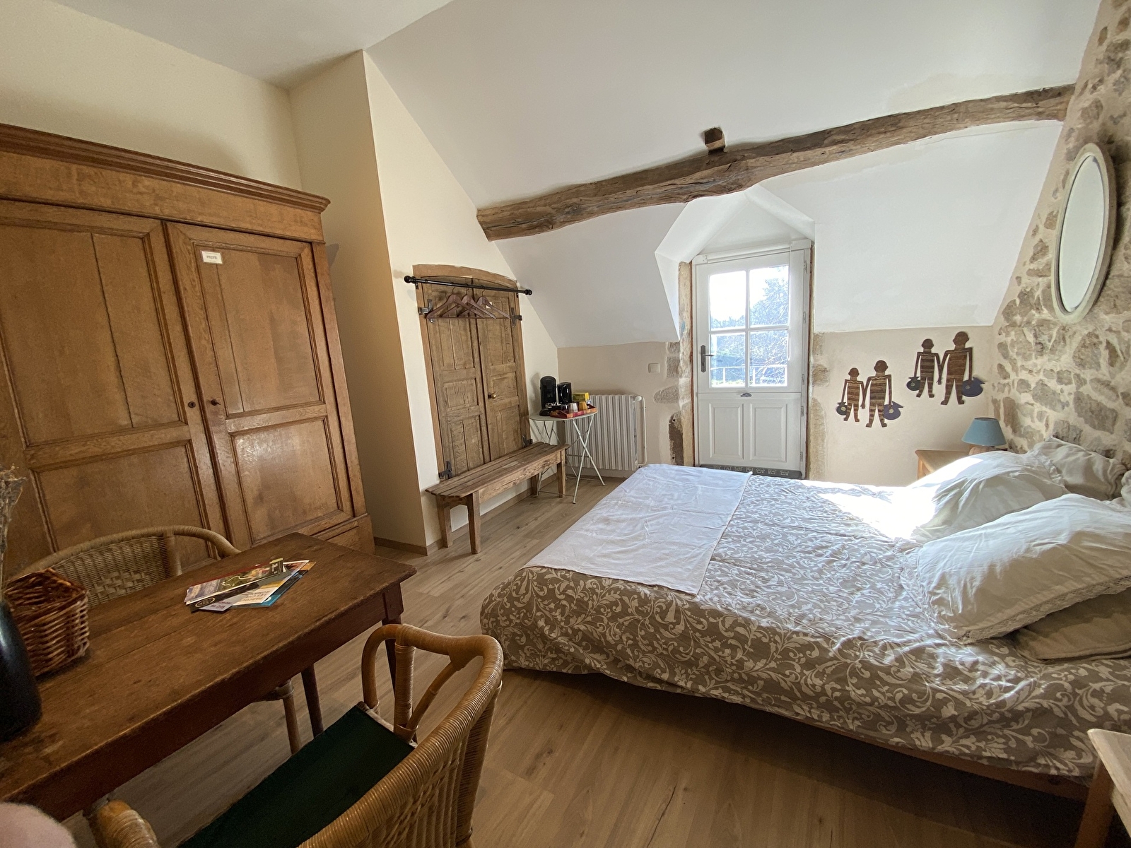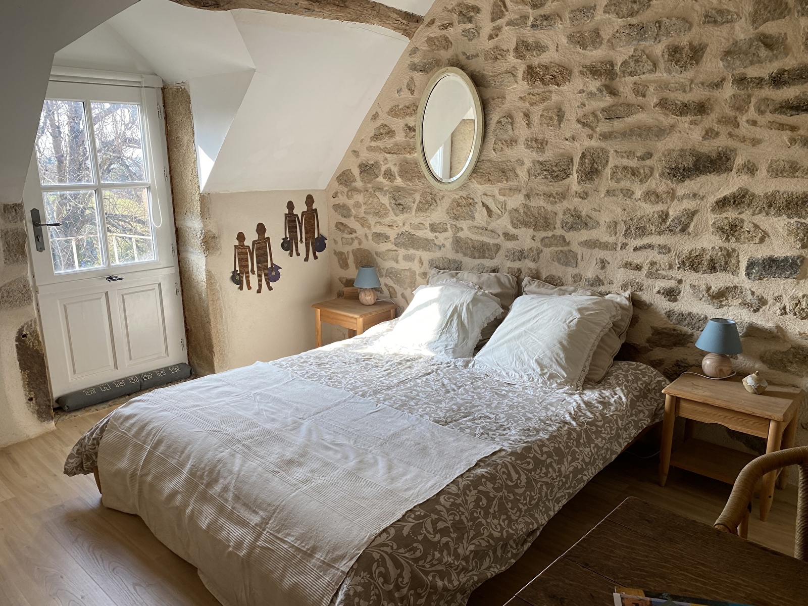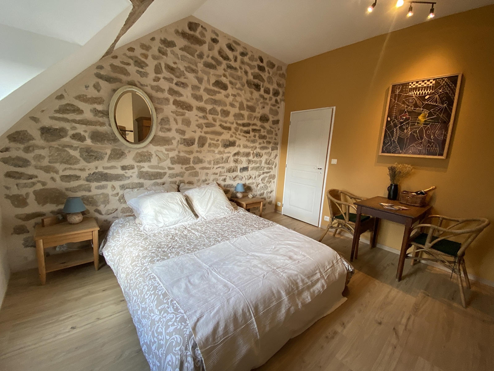 La chambre, accessible par un escalier extérieur en pierres indépendant, est équipée d’une salle de douche et d’une toilette privatives.