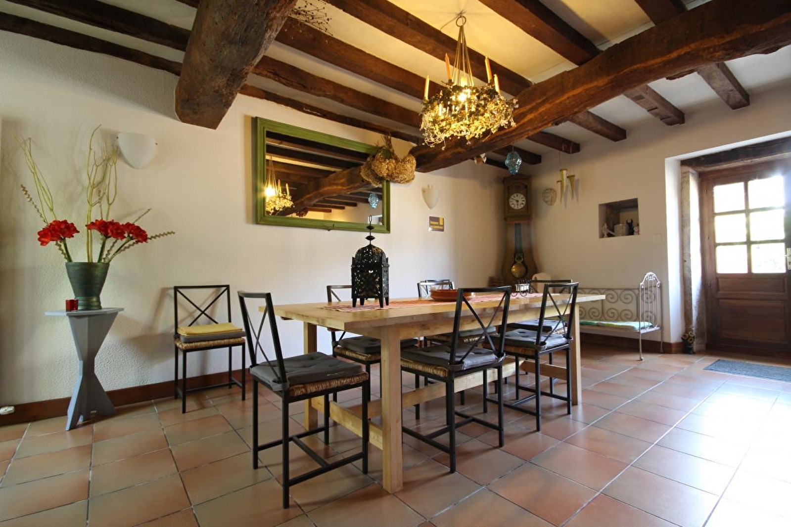 Corinne, ancienne restauratrice passionnée de "cuisine & gastronomie du monde" et Patrick (tous deux motards), vous accueillent au sein d'une authentique ferme bourguignonne de caractère du XVIIIe (datant de 1727), chargée d'histoire & soigneusement restaurée, nichée au calme en bordure d'une petite ruelle. Totale tranquillité au cœur d'un ravissant petit village typique & préservé au riche patrimoine, pétri de charme, célèbre pour son église romane du XIe (le "Phare de la Bourgogne du Sud" dominant en promontoire la vallée de la Saône ; sublime belvédère panoramique jusqu'aux Alpes & Mont-Blanc) & ses 3 lacs aménagés (pêche & baignade). A deux pas des premiers vignobles comme de la douce campagne vallonnée alentours, conjuguant "pleine nature" et agriculture, entre forêts & prairies bocagères, blotti au pied des contreforts boisés du massif sauvage de Sud Bourgogne (remarquable écosystème protégé en "Zone Natura 2000") à parcourir lors d'apaisantes balades à pied ou VTT. Chambres de bon confort. Chaleureux cachet campagnard mixant diverses influences "déco" thématisées selon l'histoire familiale de vos hôtes. Ambiance zen & douce. Agréable terrasse (en gravier) aménagée sur une intimiste courette close, végétalisée & fleurie, blottie à l'arrière de la maison (prolongée par un mini jardinet).