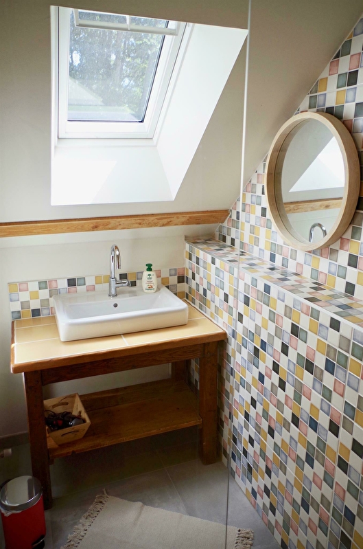 Chambre avec un lit double (180x200) et 1 lit simple (90x200). Cet ensemble est modulable en 3 lits simples de 90x200. Salle d'eau ave douche, wc indépendant.