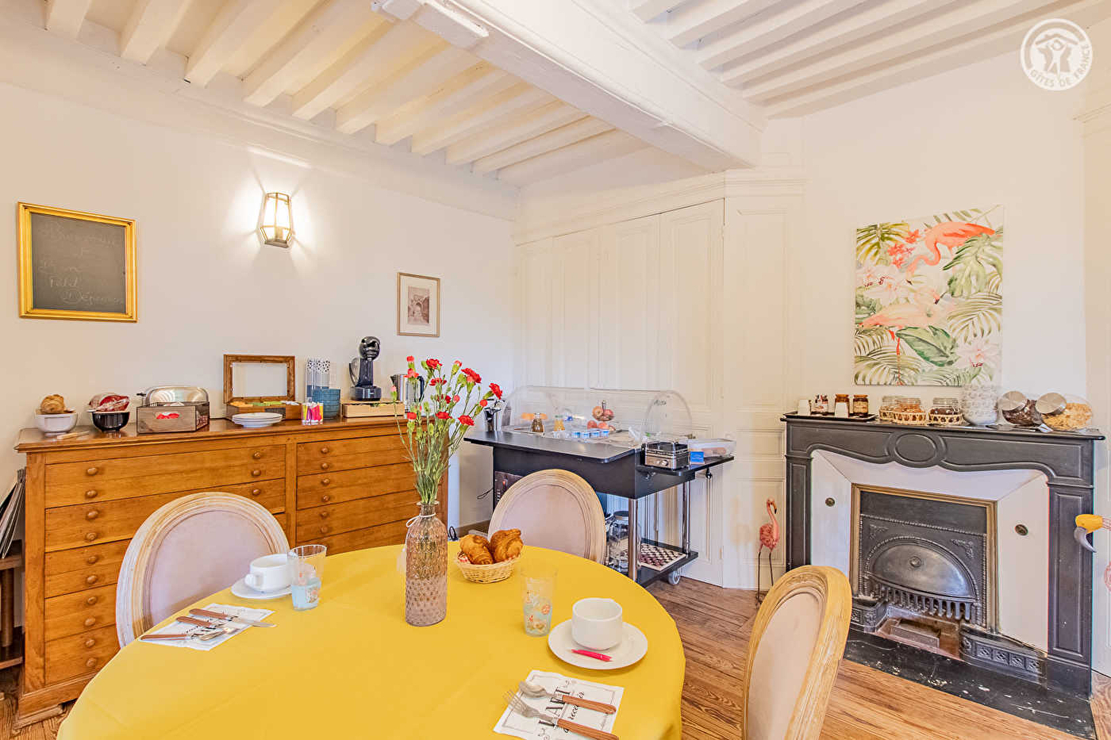 Composition : Domaine comprenant 2 chambres d'hôtes et 2 gîtes (séparés dans des dépendances à l'arrière de la propriété). Wifi. TV privées dans les chambres. Chauffage central gaz + PAC. Climatisation. Poêle à bois dans la pièce de vie. Une suite au 1er étage (lit 2 p. 160x200cm + convertible 2 p. 140x190cm en appoint pour enfants) avec sdb (baignoire modulable en douche) et balcon abrité privés. Une suite au 2ème étage (lit 2 p. 160x200cm) avec sdb privée (baignoire modulable en douche). Espace terrasse sur cour + parc (3000m²) + local vélo + parking privé. Restaurants & toutes commodités à 1 km.
