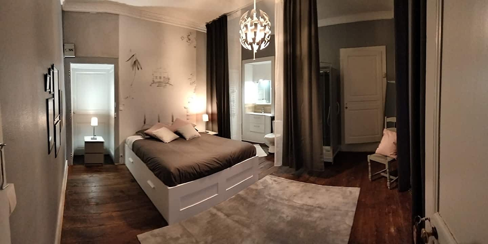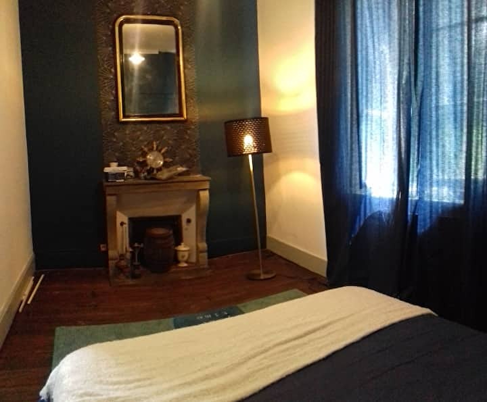 - Une seconde chambre intitulée "Douces rêveries au verger" qui elle, a une décoration cheminée. La grande salle de bain se partage avec l'hôte et est équipée d'une baignoire douche hydromassante.