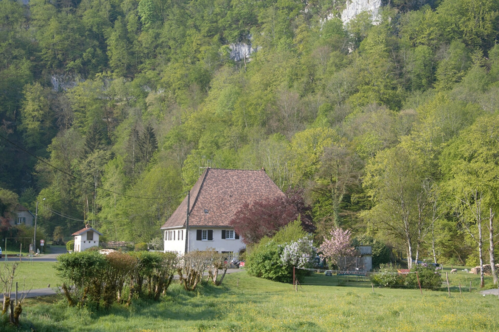 Cet ancien moulin est directement situé en bordure de la source verte au Val de Cusance.
