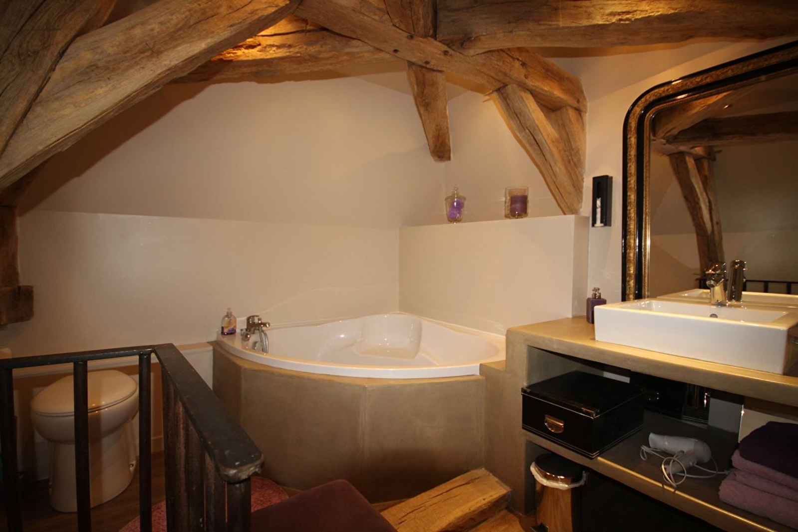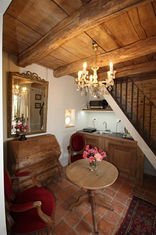 Composition : Pigeonnier indépendant voisinant la maison des propriétaires & un gîte (indépendance totale). Wifi (fibre). Chauffage électrique. Chambre en triplex (échelle de meunier entre chaque niveau). Rdc : pièce de vie avec kitchenette & TV (1 plaque induction + micro-ondes + réfrigérateur). 1er étage : espace chambre (lit 2 p.140x190cm). 2ème étage : salle de bain (baignoire d'angle + Wc). Terrasse + parking privés. Espace réservé côté jardin. Salle de jeux en commun. Restaurants, commodités & supermarchés 5 km.