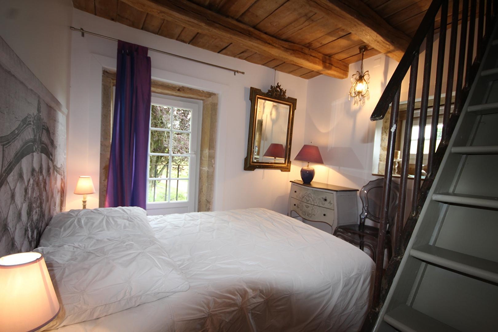Insolite authentique "pigeonnier" de caractère du XVIIIe sis au calme sur une propriété de plusieurs ha pétrie d'histoire, jadis domaine agricole lié au château voisin d'Anne-Charlotte de Chancy, épouse du célèbre mousquetaire D'Artagnan. Totale tranquillité en pleine campagne charolaise (protégée en ZNIEFF pour ses richesses faunistiques & floristiques), au sein d'un hameau rural dispersé lové au cœur du bucolique bocage local, au creux d'un plateau de pâtures vallonnées, à deux pas d'une vaste forêt domaniale. Chambre totalement indépendante aménagée en triplex dans l'esprit d'un mini "appartement d'hôtes" atypique & 100% dépaysant. Chaleureux cachet campagnard sublimé par une belle restauration patrimoniale (conservation des murs & linteaux en pierres, poutraison, magnifique charpente "en étoile"…). Ambiance ultra douillette & cosy digne d'une "maison de poupée". Apaisant cadre paysagé, blotti aux confins du jardin des propriétaires (soigneusement engazonné & arboré), offrant un espace privatif réservé (salon de jardin de détente & repos ombragé sous les arbres). Agréable intimiste terrasse privative aménagée, "clos de murs" par d'historiques pierres sèches, nichée en lisière immédiate de prairies accueillant les paisibles chevaux des propriétaires, dotée d'une superbe vue dégagée sur la campagne environnante. Exceptionnelle salle de jeux couverte (300m² avec trampoline, ping-pong, panier basket, billard, baby-foot etc…). Littéral havre de repos.