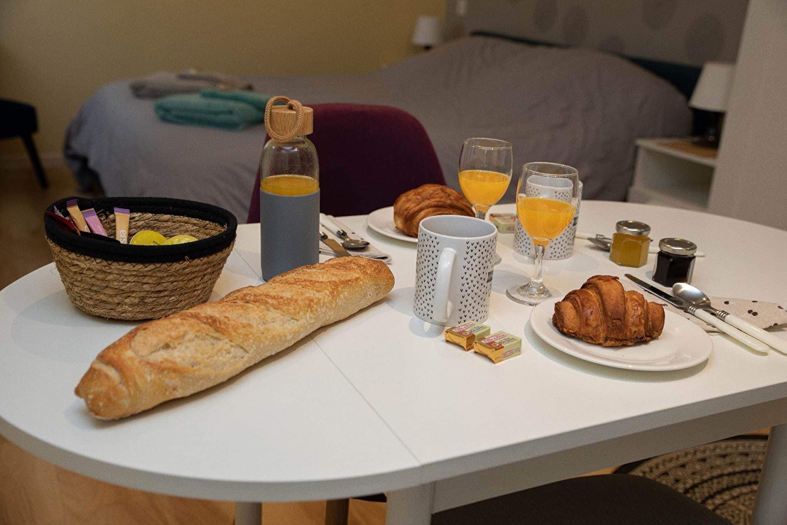 Les copieux petits- déjeuner sont servis dans les chambres et sont composés de pain frais, de viennoiseries, de fruits de confitures artisanales et de miel local. A belle saison, vous pourrez profiter de prendre le petit déjeuner sur la terrasse privative.