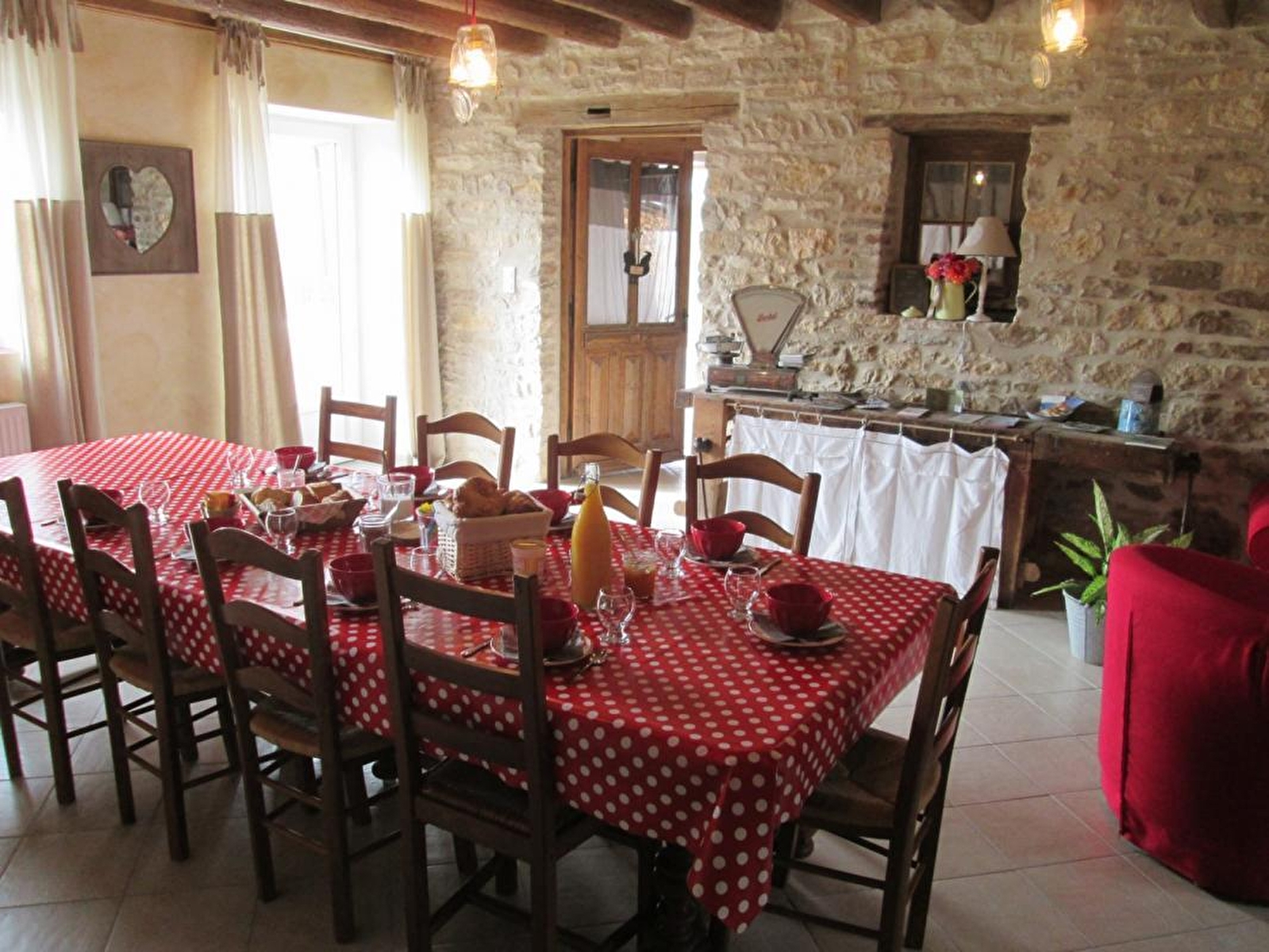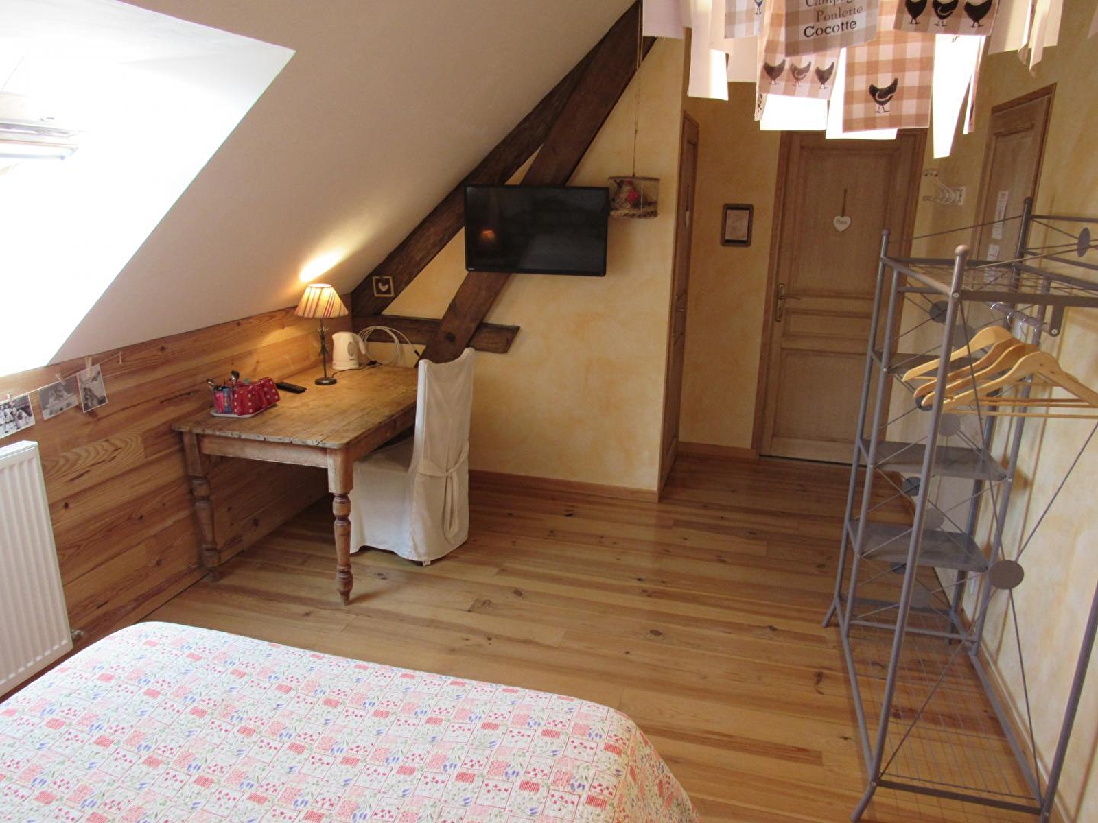 Composition : Propriété comprenant maison propriétaires et ses 5 chambres d'hôtes + un gîte (maison voisine totalement indépendante). Wifi (fibre). Chauffage central gaz. 1 chambre double au rdc (lit 2 p. 160x200cm). 1er ét. : 4 chambres avec climatisation réversible dont 2 « mini duplex » familiaux composés de 2 chambres indépendantes et communicantes (lit 2 p 160x200cm + 2 lits 1 p. 90x190cm dans chaque), 1 chambre familiale (lit 2 p 160x200cm + 1 lit 1 p. 90x190cm) et 1 chambre double (lit 2 p 160x200cm). TV privée + salle d'eau (douche) avec Wc privatifs dans chaque chambre. Réfrigérateur. Pièce de vie commune au rdc. Jardin + cour. Local vélos. Parking privé. Toutes commodités 9 km. Gare 8.5 km. Arrivée possible uniquement entre 17h et 21h (d'octobre à mars) et 21h30 (d'avril à septembre).