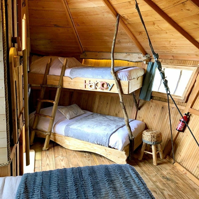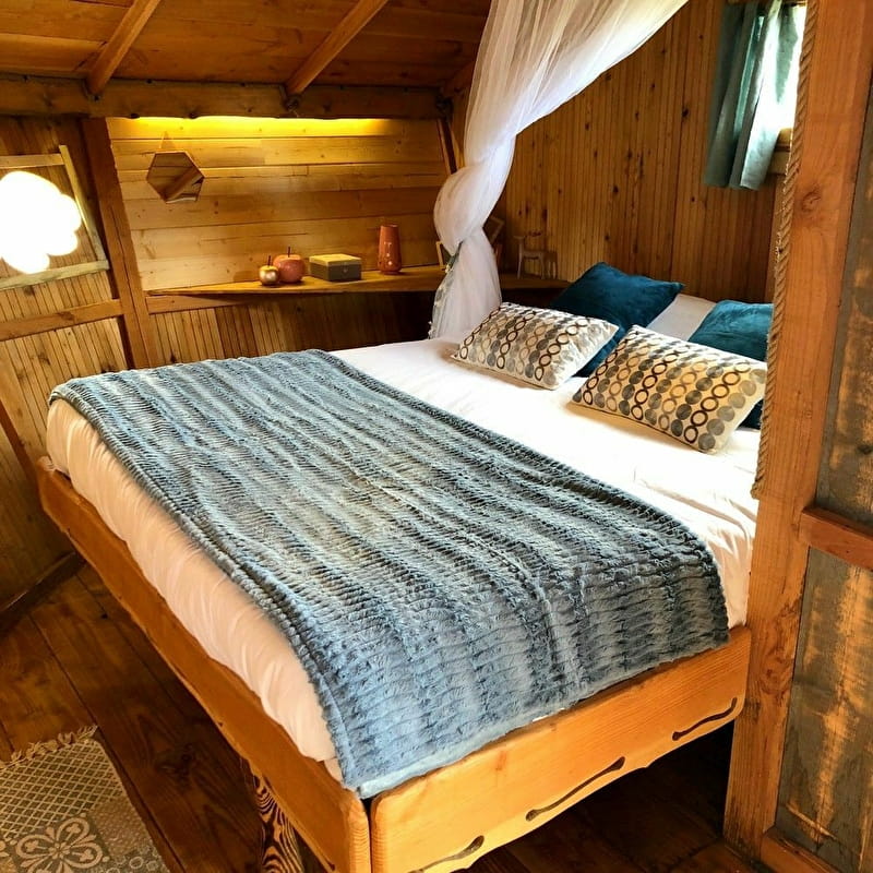 Cette cabane peut accueillir 2 adultes et 2 enfants. Elle contient un lit double, deux lits couchette ainsi qu’une terrasse donnant sur les monts bourguignons, les prés ainsi que sur le hameau de Quintaine. Disposée à 7 mètres de hauteur, elle est idéale pour les petites familles aventureuses et curieuses de nouvelles découvertes tout en restant extrêmement sécurisée avec un portillon, des rambardes et des filets. Elle accepte donc les enfants à partir de 7 ans: (obligatoirement accompagné d’un adulte dans l’hébergement).