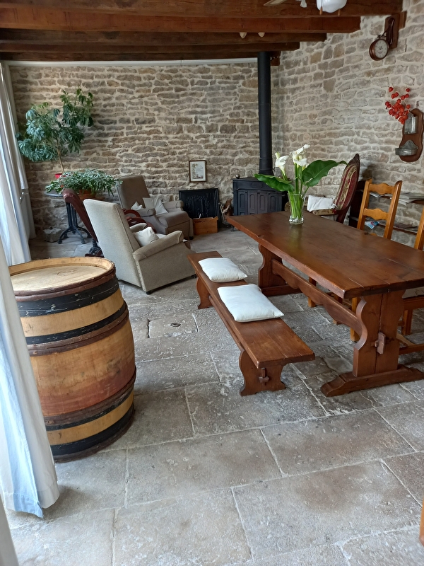 En rez-de jardin, une grande salle de vie est à votre disposition, avec cheminée pour des soirées d’hiver cocooning.
