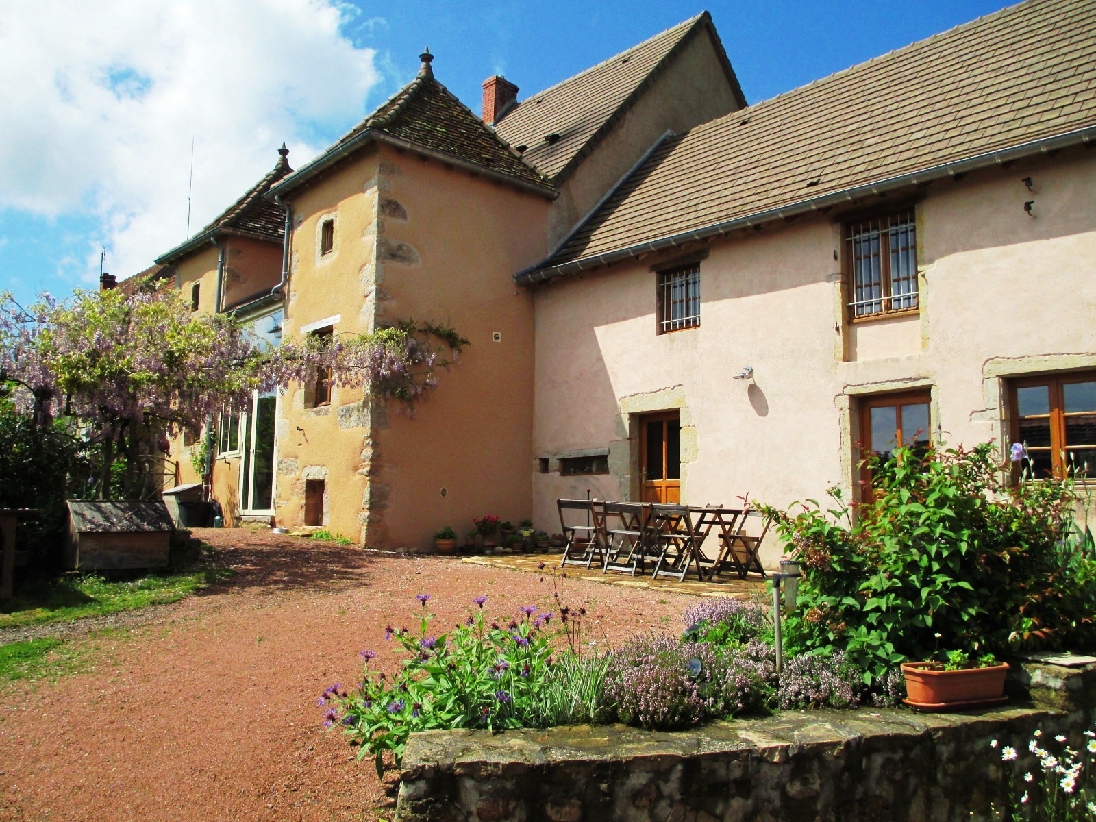 Aux confins du Clunisois et des monts du Charolais, Josette, de retour dans son village natal, a jeté son dévolu sur cette ancienne maison de pays. Après une importante restauration, elle a aménagé une chambre de plain pied pour 2 pers et deux autres chambres à l'étage (dont 1 suite familiale pour 4 pers).