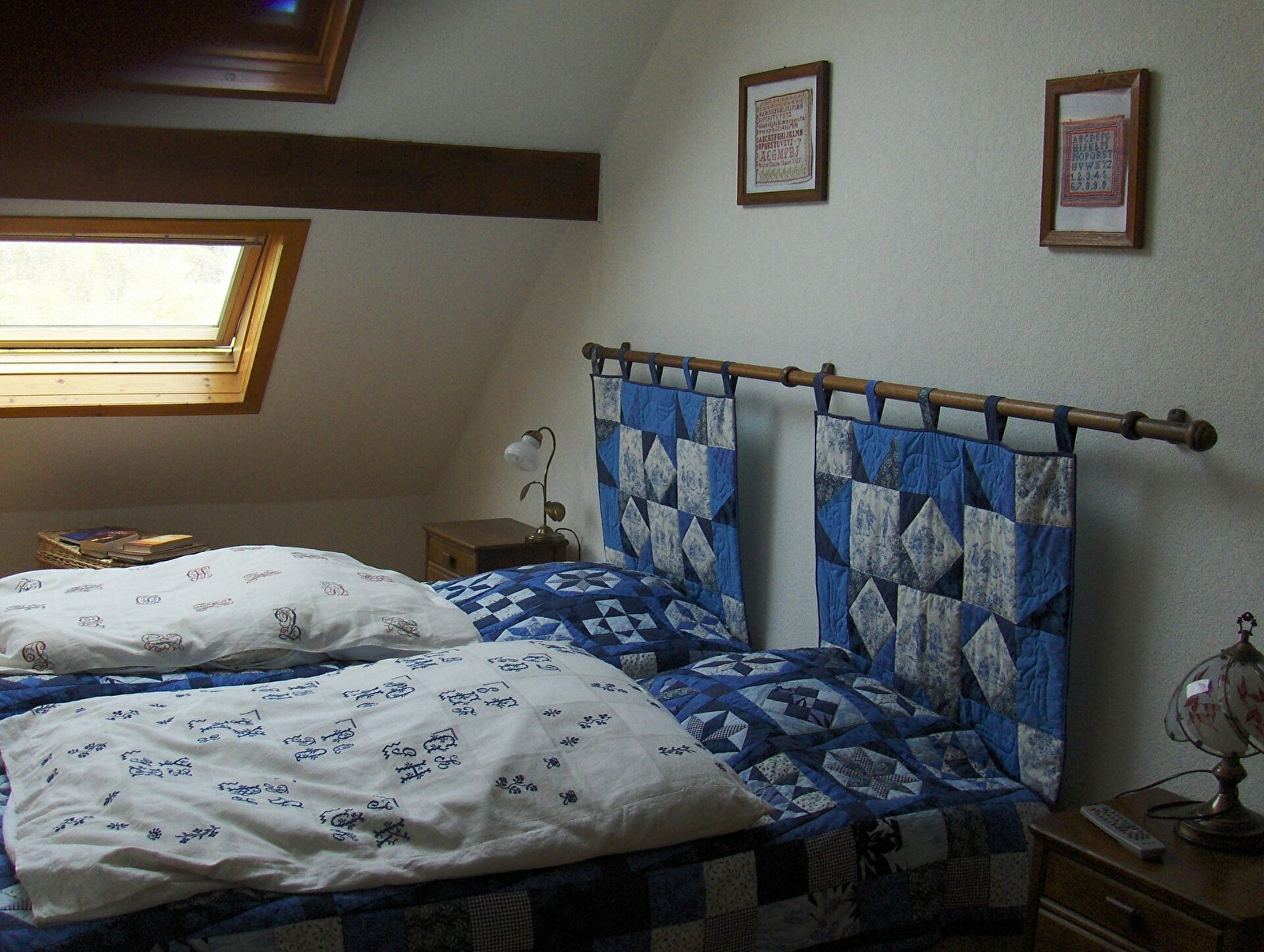 Chambres sous rampant, bénéficiant d'une grande clarté, situées dans une maison en bout de village, calme et sérénité assurés.
