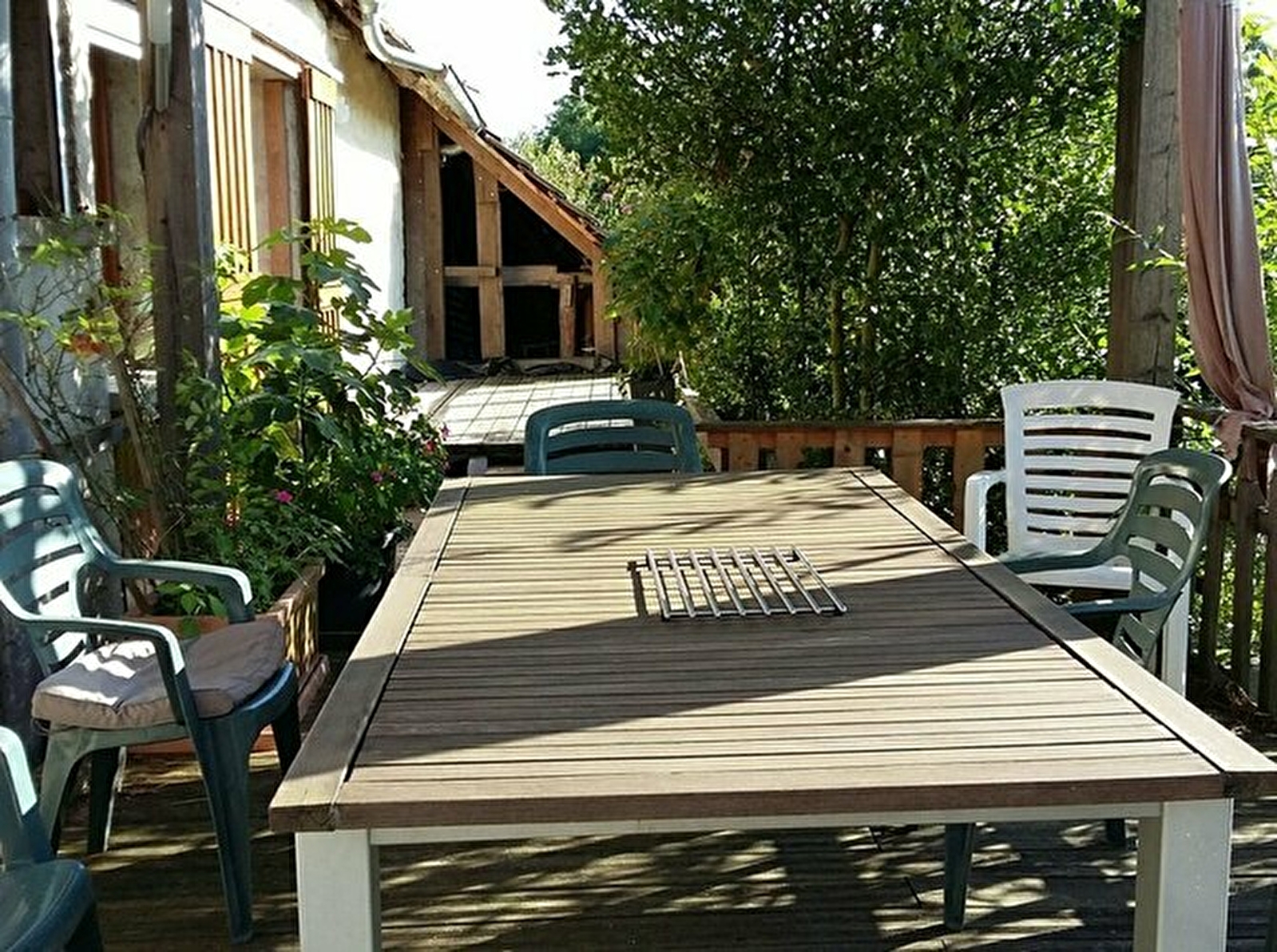 Chambres d'hôtes rustiques dans notre ferme-jardin, permettant de découvrir notre approche basée sur la biodiversité et la biodynamie, avec nos animaux pour l'agrément et le jardin (poules, canards, brebis).